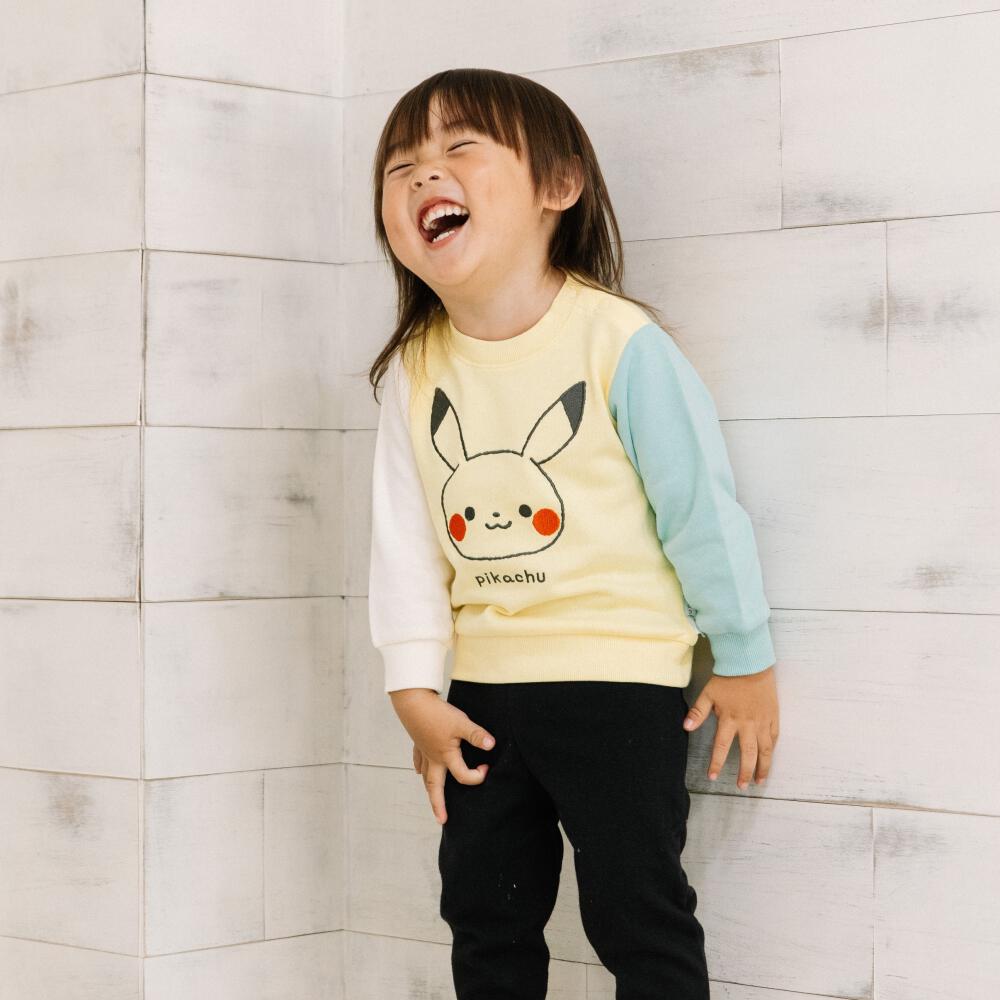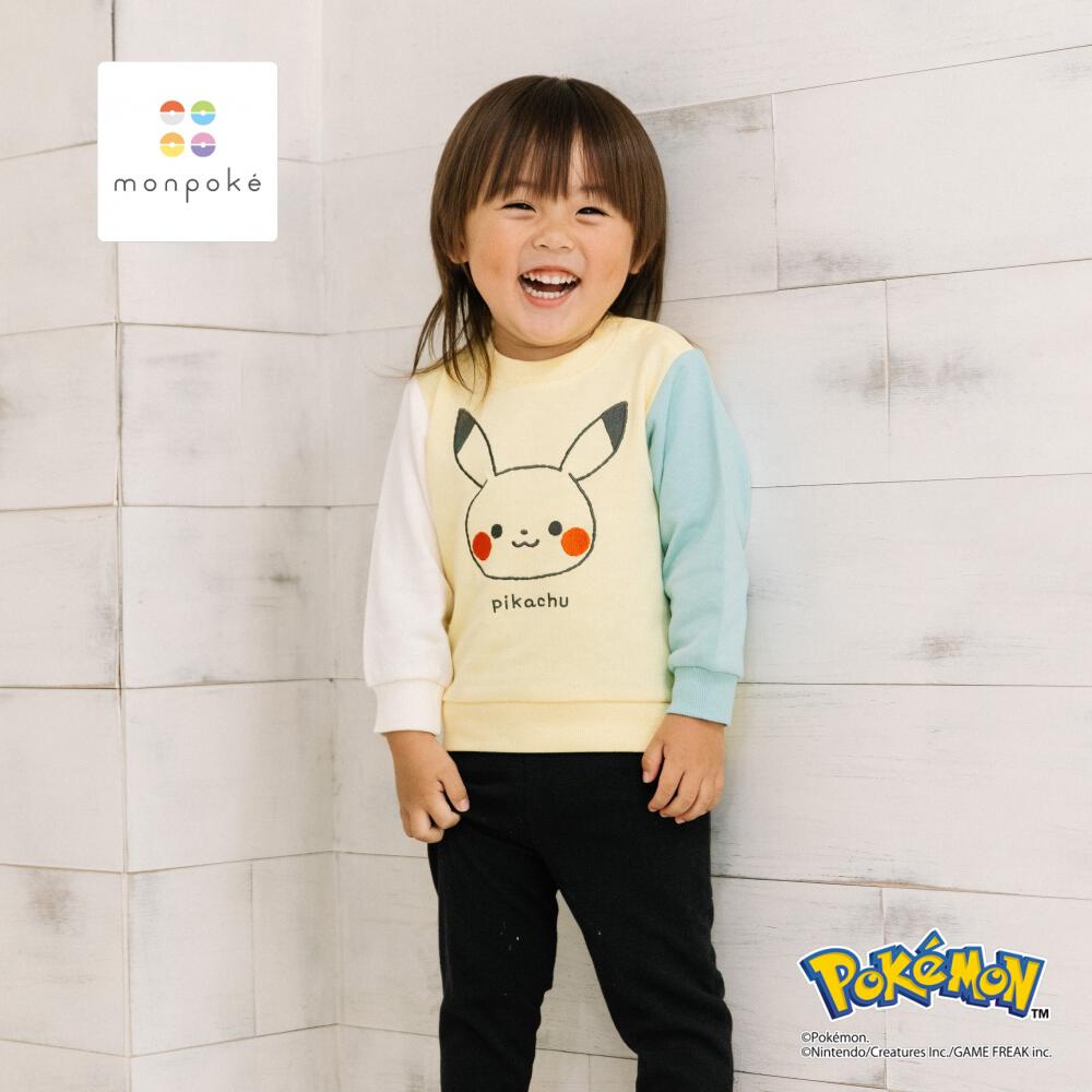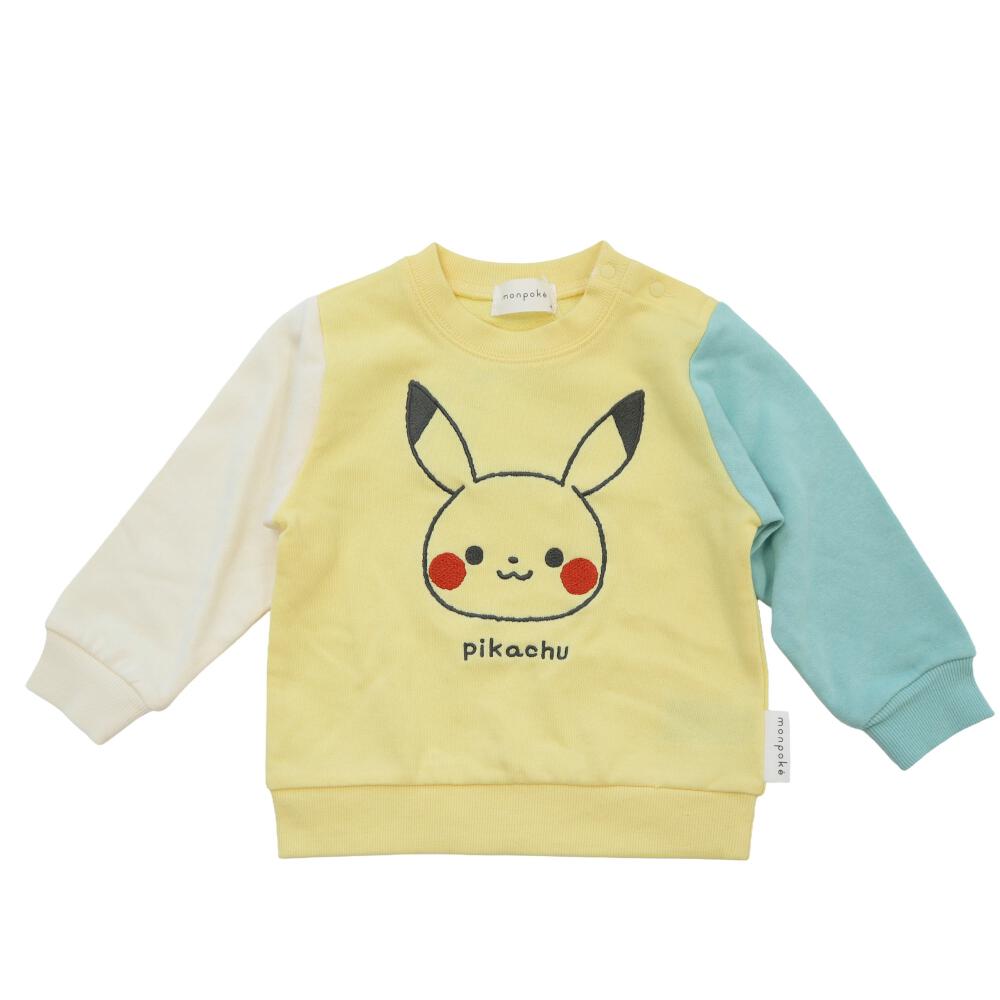 monpoke モンポケ トレーナー 袖切替 ピカチュウ イエロー×90cm