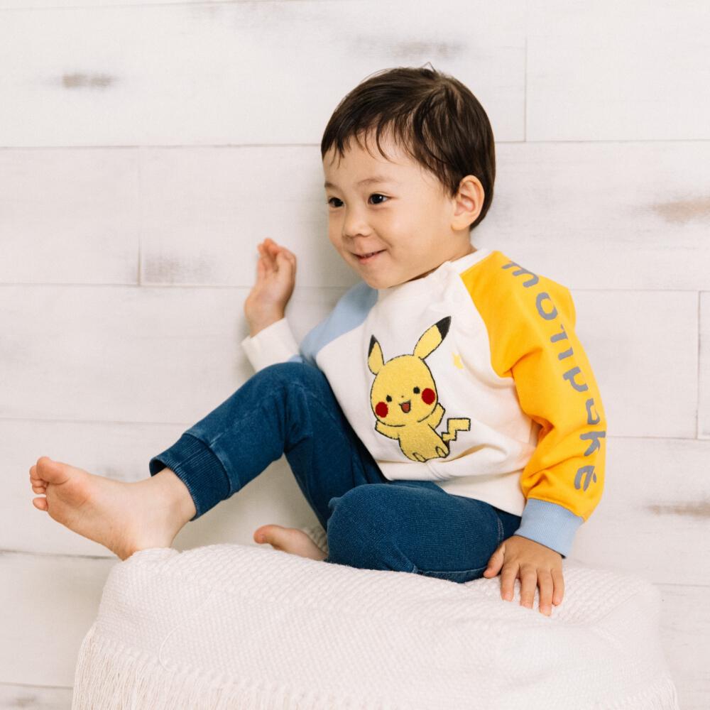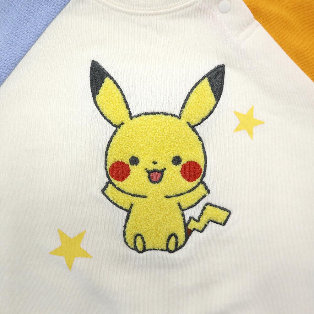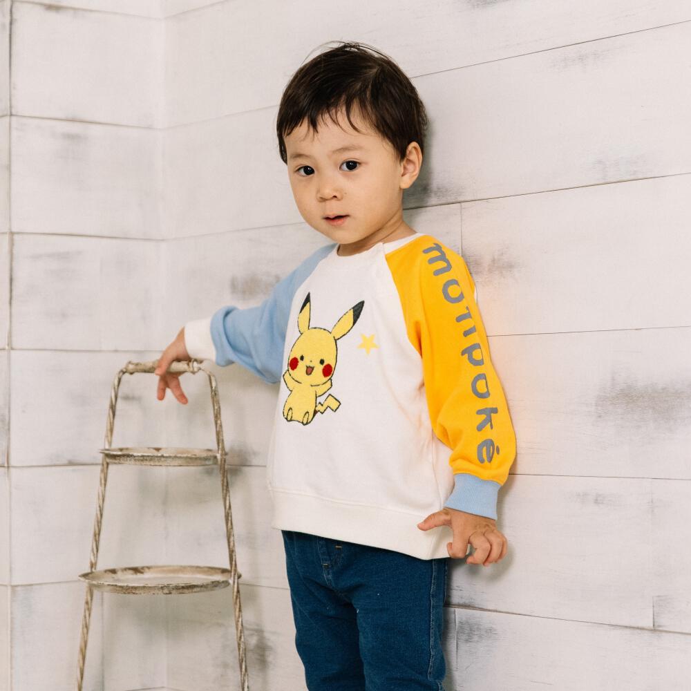 たくさん着回しできる裏毛素材に、ピカチュウの大きなさがら刺しゅうデザインがポイント♪