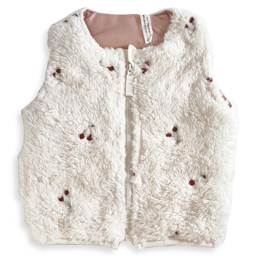 ベビーザらス限定 COJIKA ボア刺繍入りベスト チェリー(ホワイト×90cm)