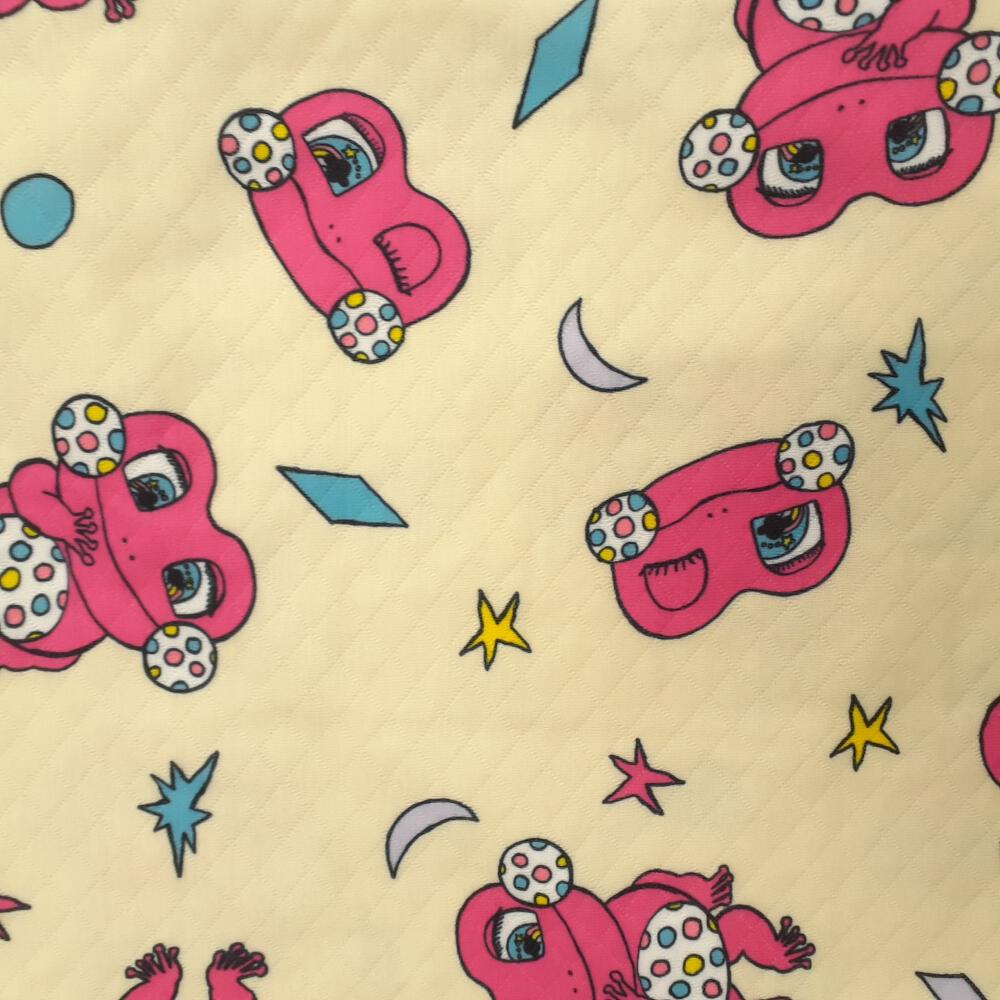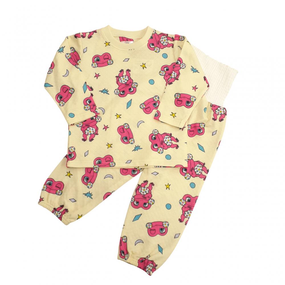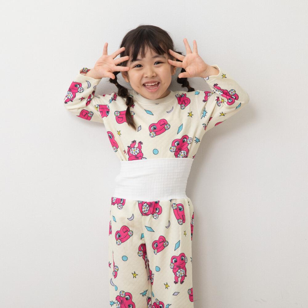 けけちゃま 長袖パジャマ 裏綿ダイヤキルト 総柄丸首 クリーム×100cm
