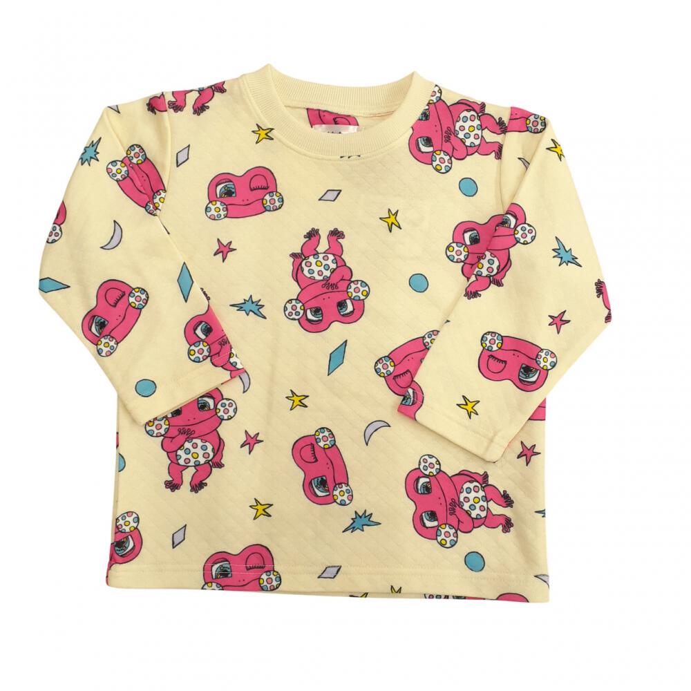 けけちゃま 長袖パジャマ 裏綿ダイヤキルト 総柄丸首 クリーム×110cm