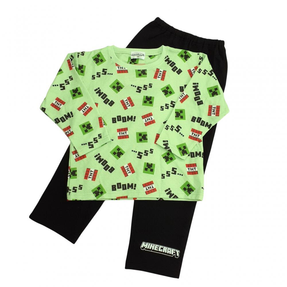 マインクラフト 長袖パジャマ 裏綿ダイヤキルト 総柄丸首 グリーン×110cm