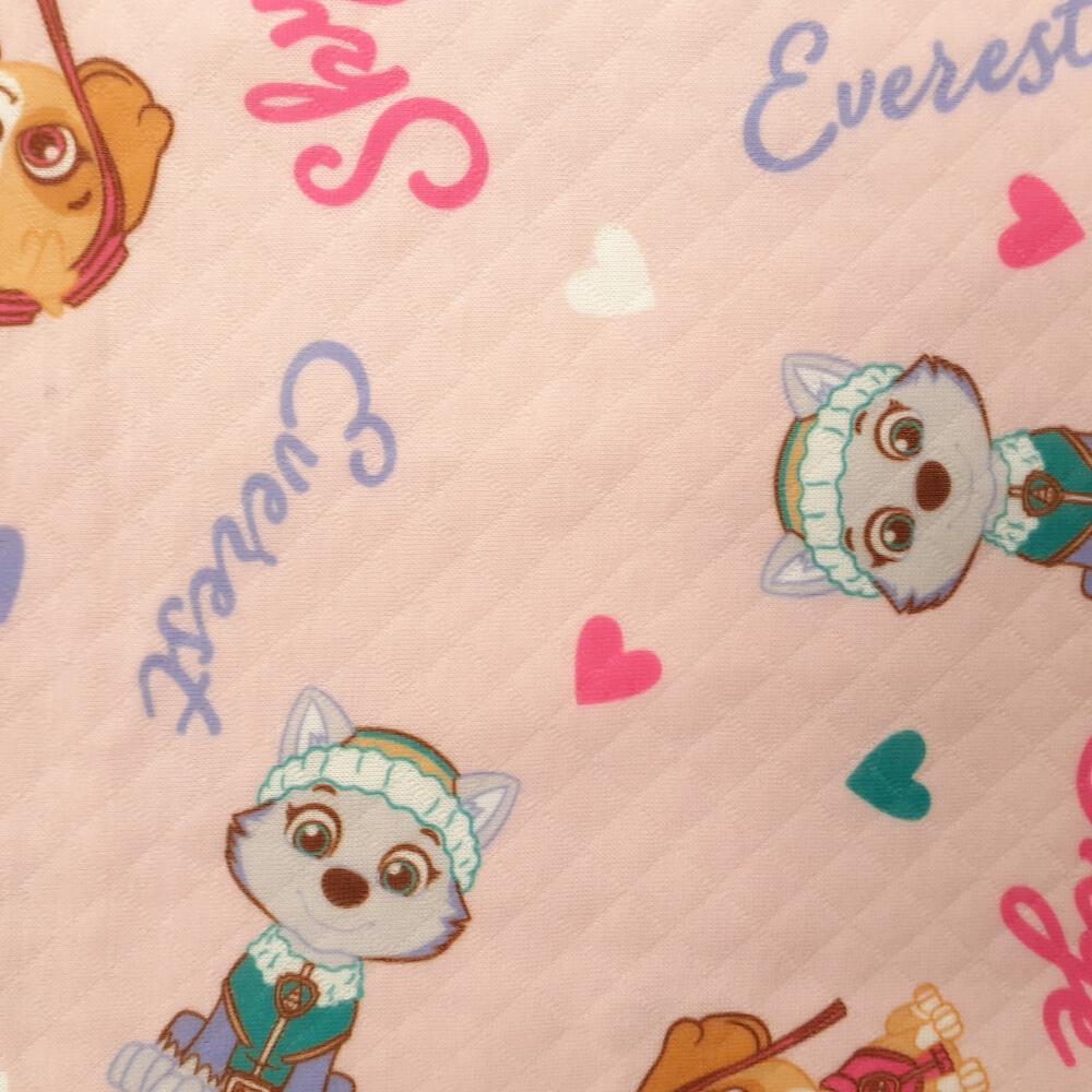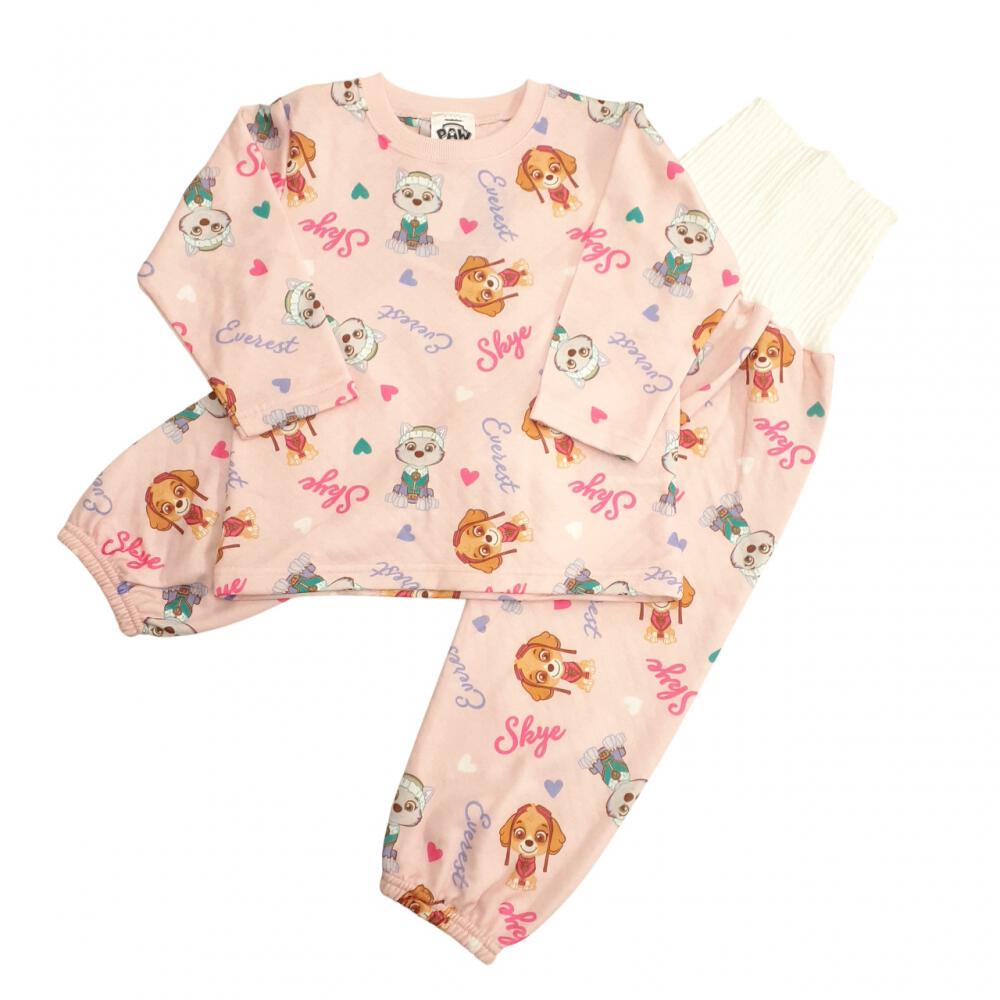 パウパトロール 長袖パジャマ 裏綿ダイヤキルト 総柄丸首 ピンク×100cm