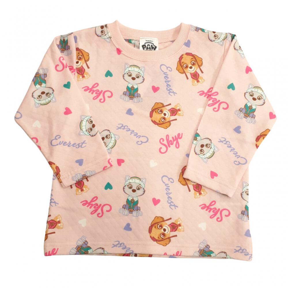 パウパトロール 長袖パジャマ 裏綿ダイヤキルト 総柄丸首 ピンク×110cm