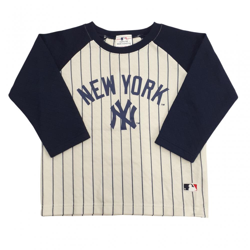 MLBヤンキース 長袖パジャマ 裏綿ダイヤキルト 丸首 ネイビー×90cm
