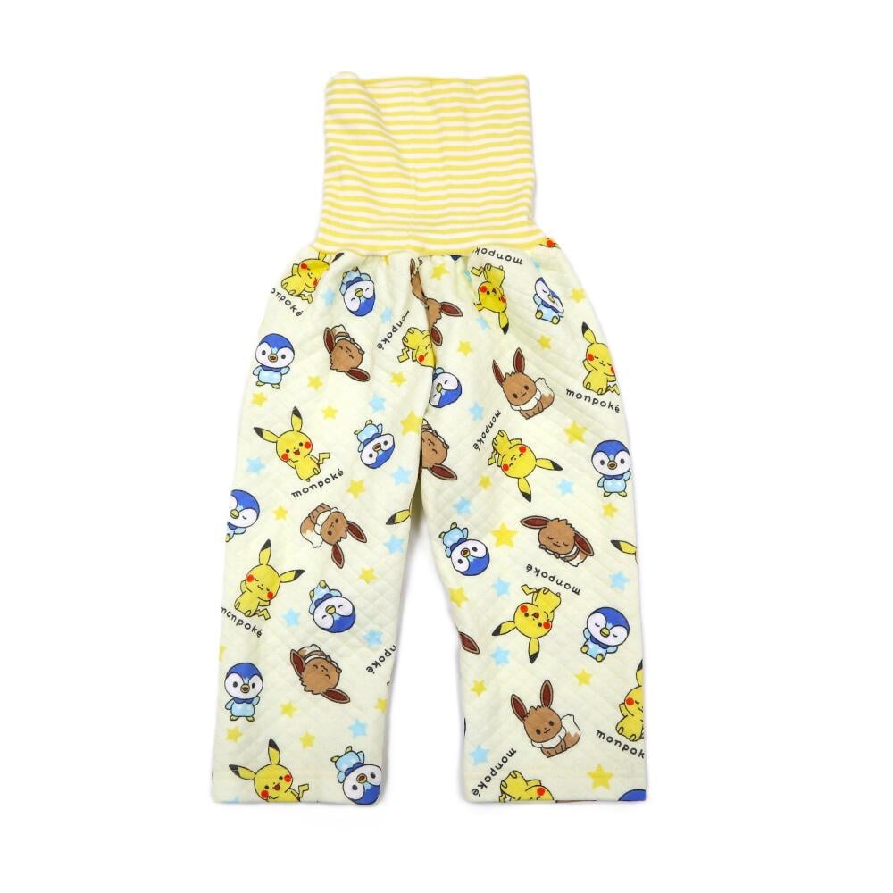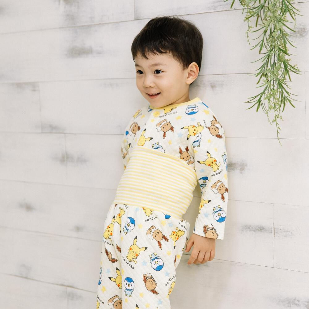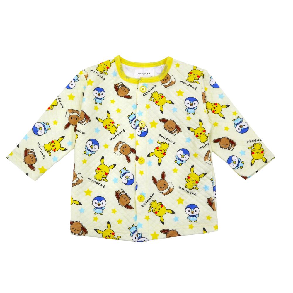 monpoke モンポケ 前開き長袖パジャマ 総柄 キルト 腹巻付き イエロー×90cm