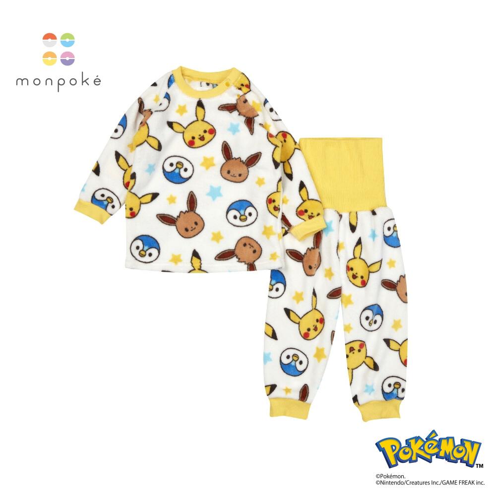 monpoke モンポケ 珊瑚フリースパジャマ 総柄 イエロー×100cm