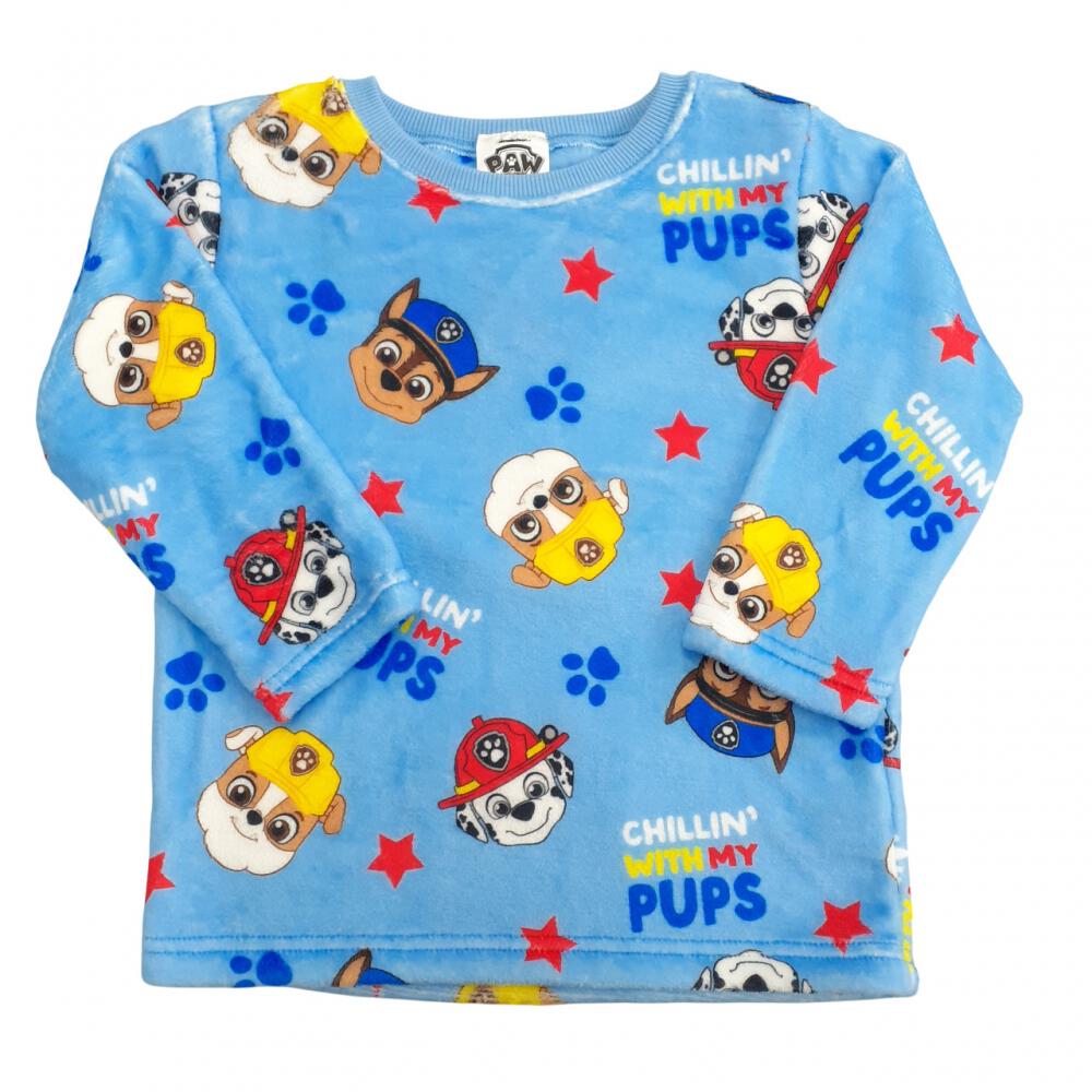 パウパトロール 長袖パジャマ ミンクフリース 総柄丸首 ブルー×110cm トイザらス限定