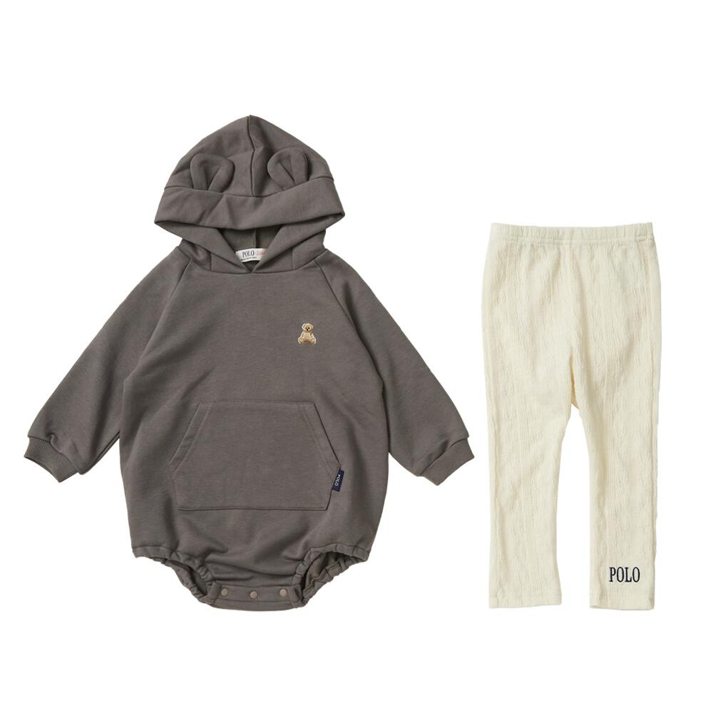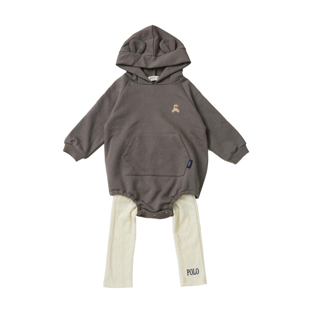 POLO BCS レギンス付フードロンパース チャコール×80cm ベビーザらス限定