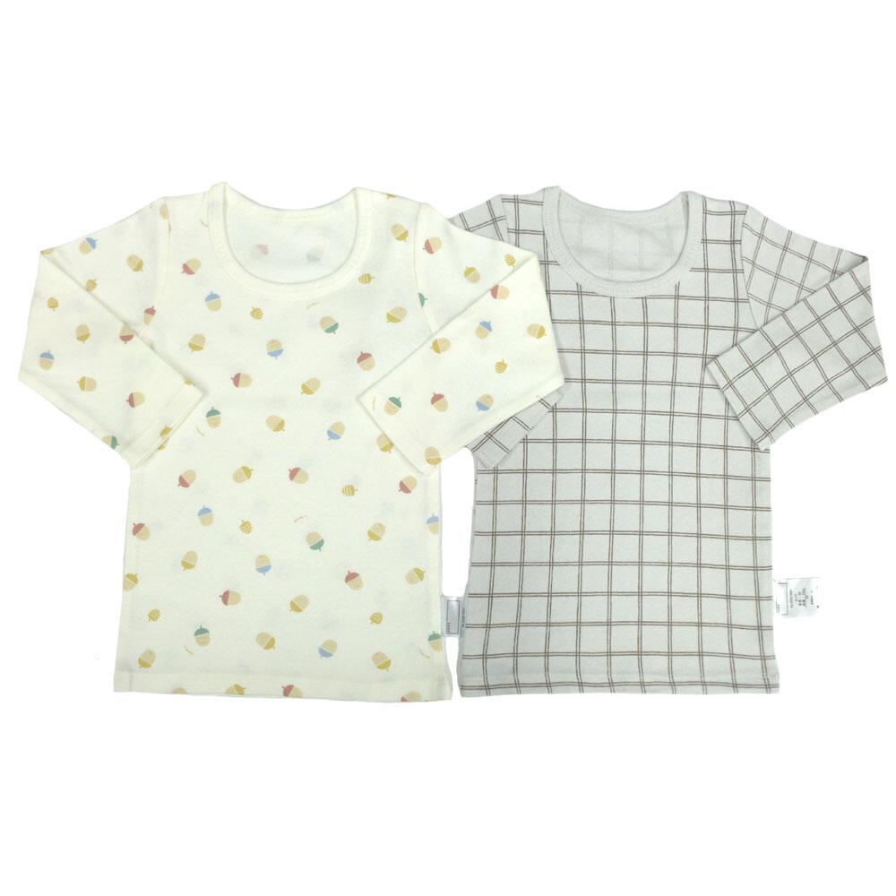 長袖シャツ肌着2枚組 スムス ドングリ×チェック グレー×90cm ベビーザらス限定