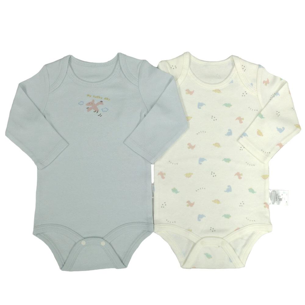 長袖ロンパース肌着 2枚組 スムス 恐竜 パステルブルー×80cm ベビーザらス限定