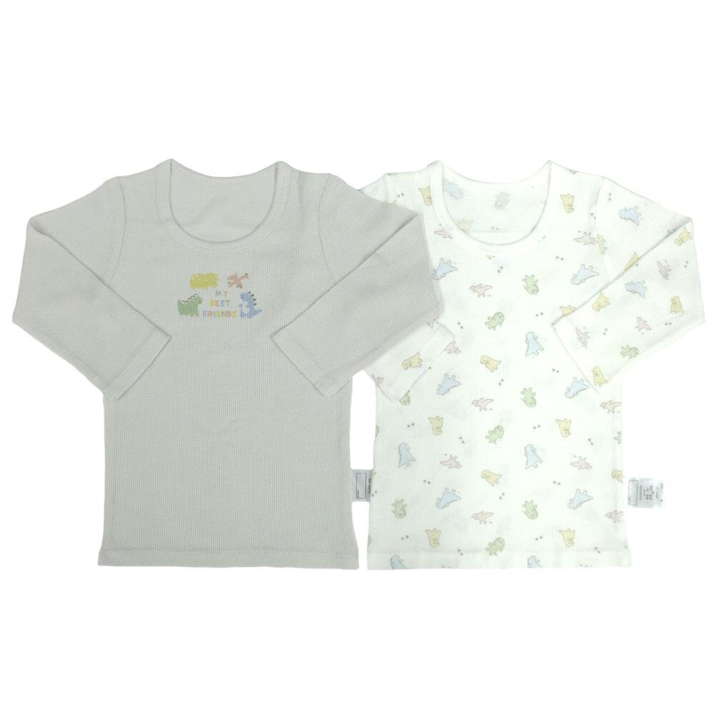 長袖シャツ肌着 2枚組 テレコ 恐竜 グレー×100cm ベビーザらス限定