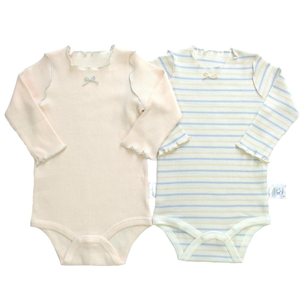 長袖ロンパース肌着 2枚組 リブメローボーダー ピンク×80cm ベビーザらス限定