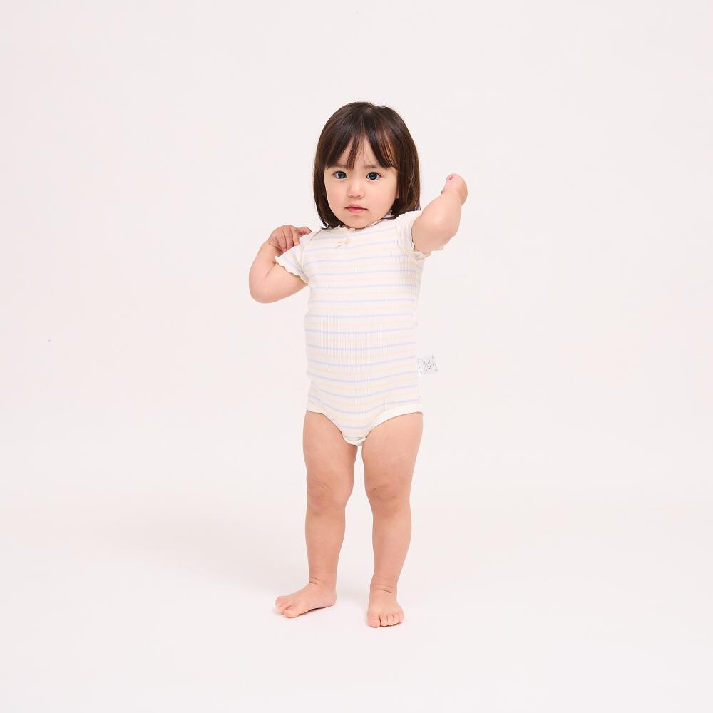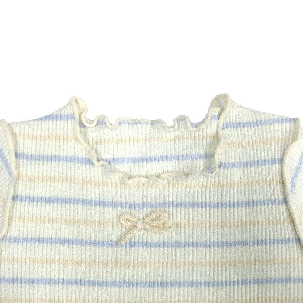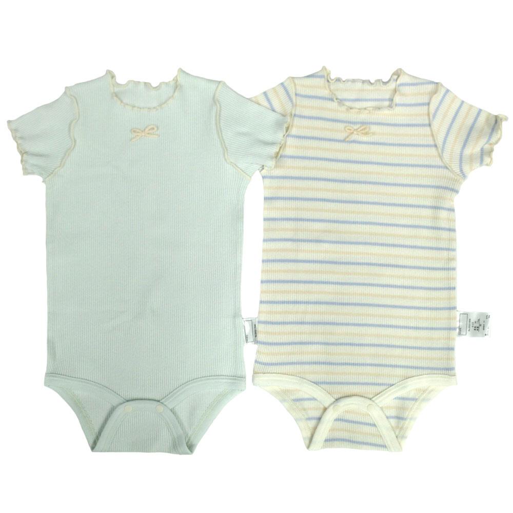 半袖ロンパース肌着 2枚組 リブメローボーダー ミント×70cm ベビーザらス限定