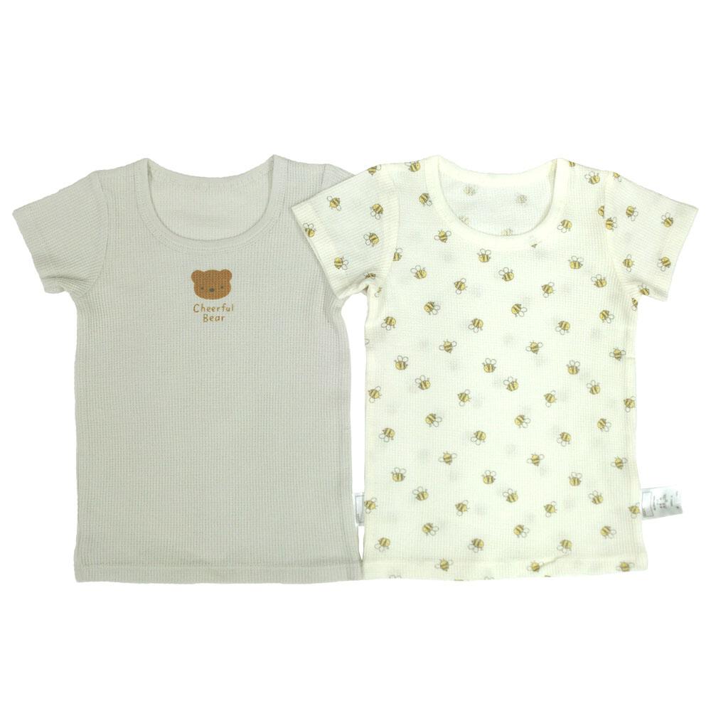 半袖シャツ肌着 2枚組 ワッフル くま×はち グレー×80cm ベビーザらス限定