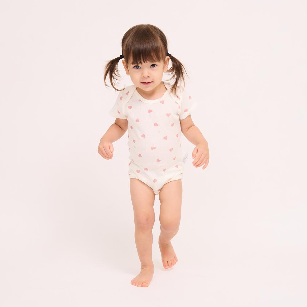 半袖ロンパース肌着 2枚組 ワッフル ハート ピンク×80cm ベビーザらス限定