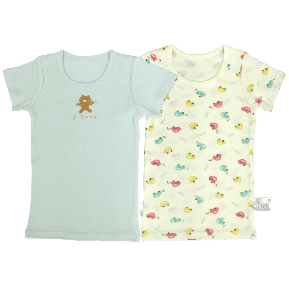 半袖シャツ肌着 2枚組 保湿スムス くま×車 パステルブルー×95cm ベビーザらス限定