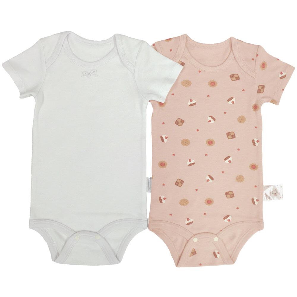 半袖ロンパース肌着 2枚組 保湿スムス ケーキ ピンク×80cm
