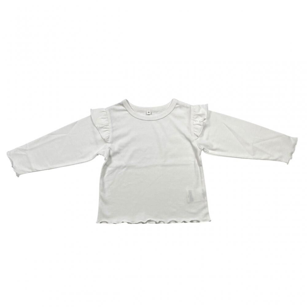 肩フリルのついた長袖Tシャツです。