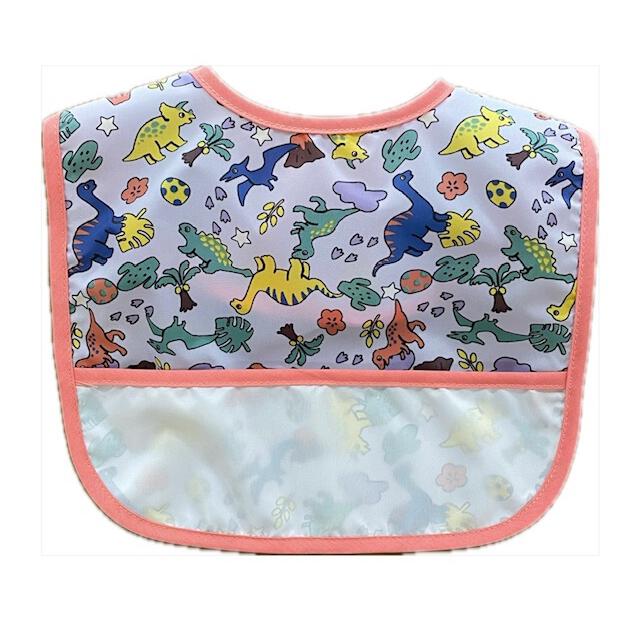 耐久はっ水加工素材を使用したエプロンで、お子様のお洋服も汚れにくく、また洗濯しても乾きやすく肌触りもさらりとしたドライ感覚で、ビニールの様なゴワゴワ感がありません。食べこぼしても大丈夫!これでママも安心です。ミニミニサイズでくるくると小さくたためるので持ち運びに便利です。首もとは面ファスナーを使用しワンタッチで簡単に着脱できます。(ワンタッチテープの角は丸くカットしてますのでお子様に安心です)