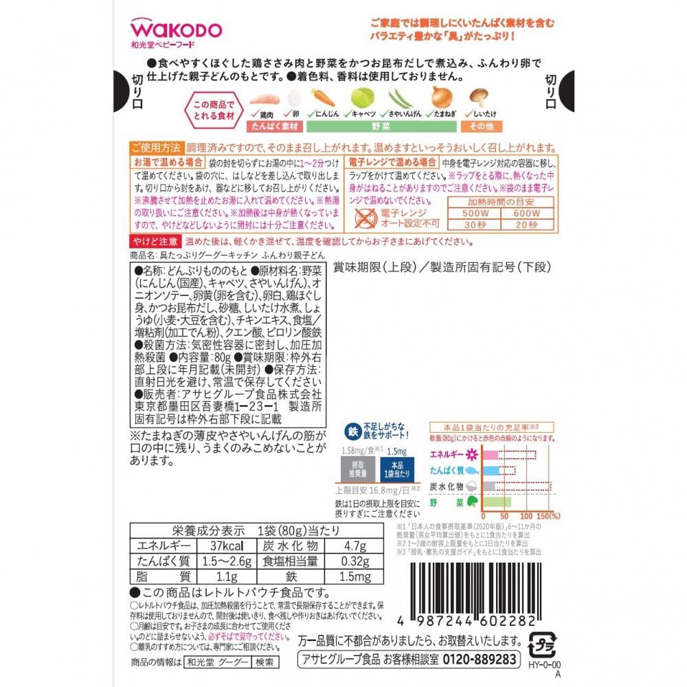 野菜(にんじん(国産)、キャベツ、さやいんげん)、オニオンソテー、卵黄(卵を含む)、卵白、鶏ほぐし身、かつお昆布だし、砂糖、しいたけ水煮、しょうゆ(小麦・大豆を含む)、チキンエキス、食塩/増粘剤(加工でん粉)、クエン酸、ピロリン酸鉄