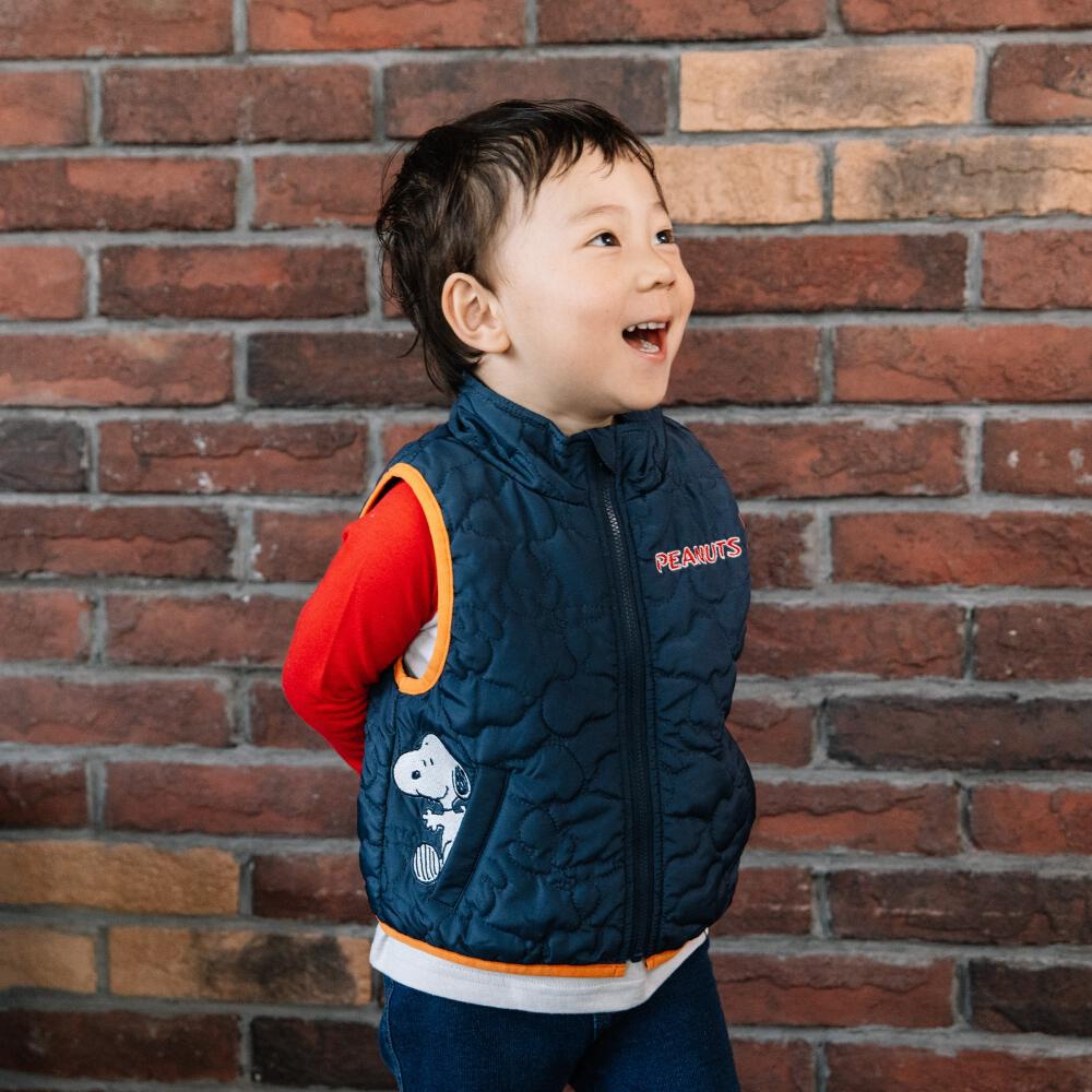 SNOOPY スヌーピー ベスト 中わたキルト ネイビー×90cm