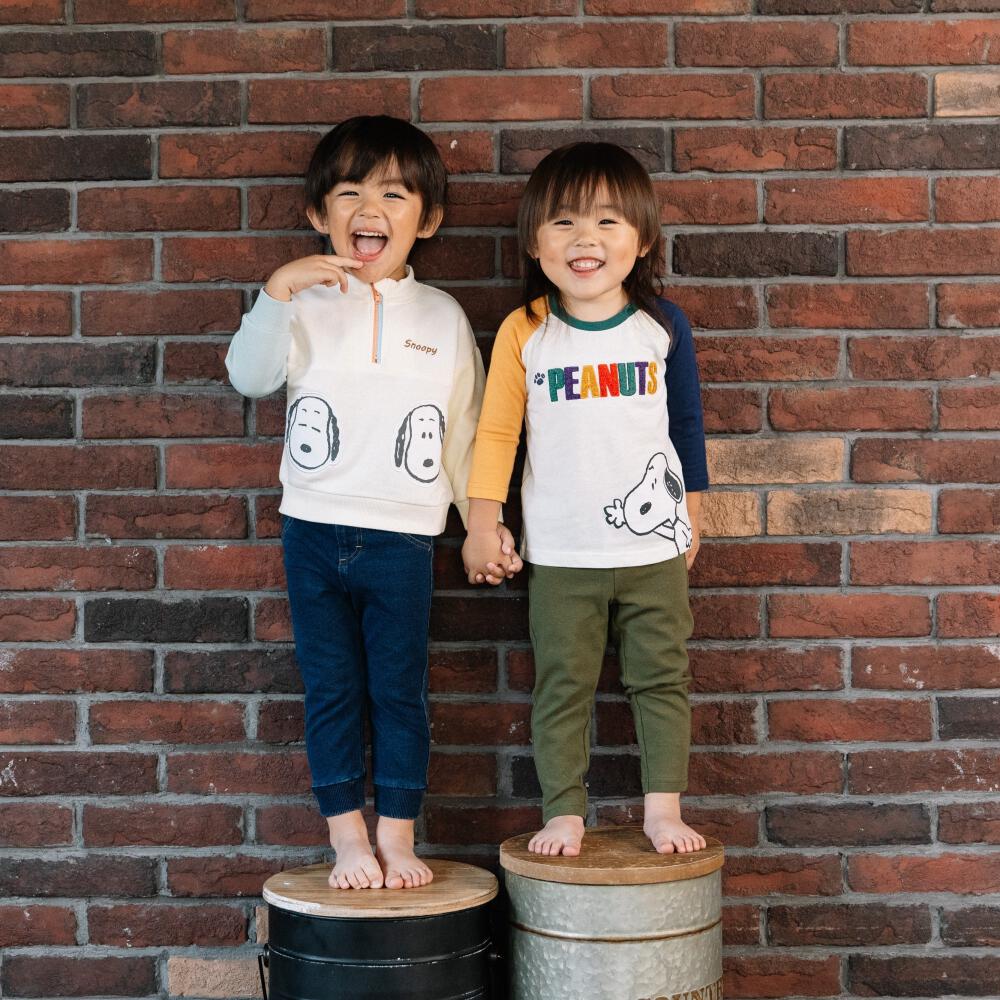 SNOOPY スヌーピー 長袖Tシャツ ラグラン 袖配色 ナチュラル×90cm