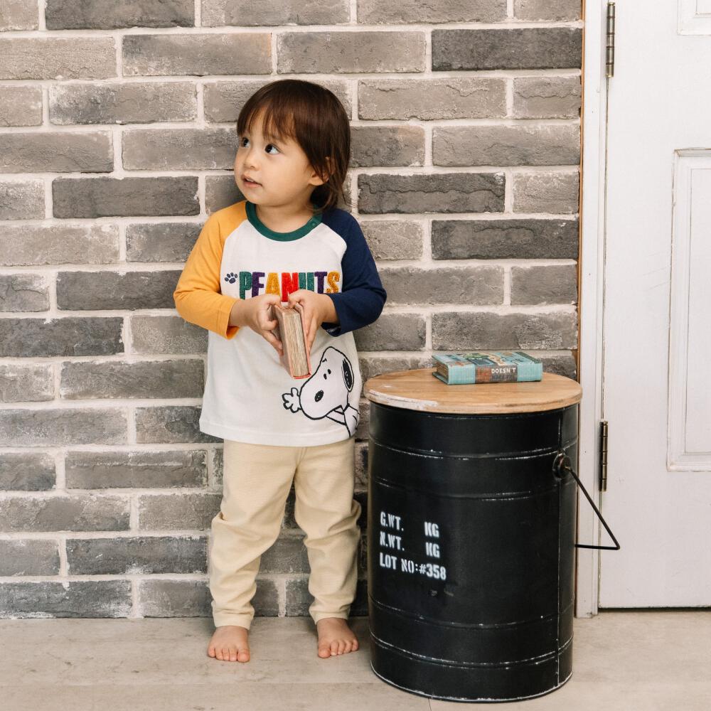 SNOOPY スヌーピー 長袖Tシャツ ラグラン 袖配色 ナチュラル×95cm