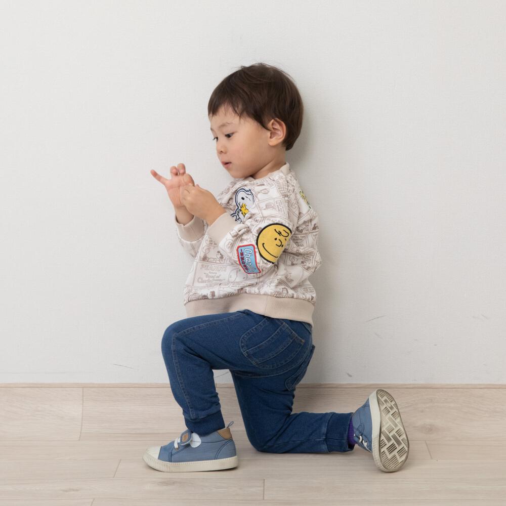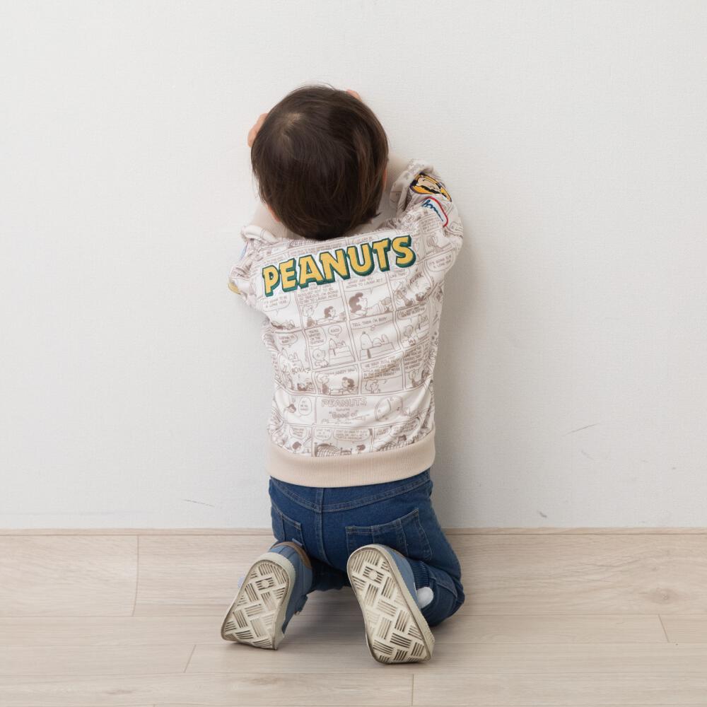 SNOOPY スヌーピー トレーナー 総柄 ワッペン ベージュ×95cm