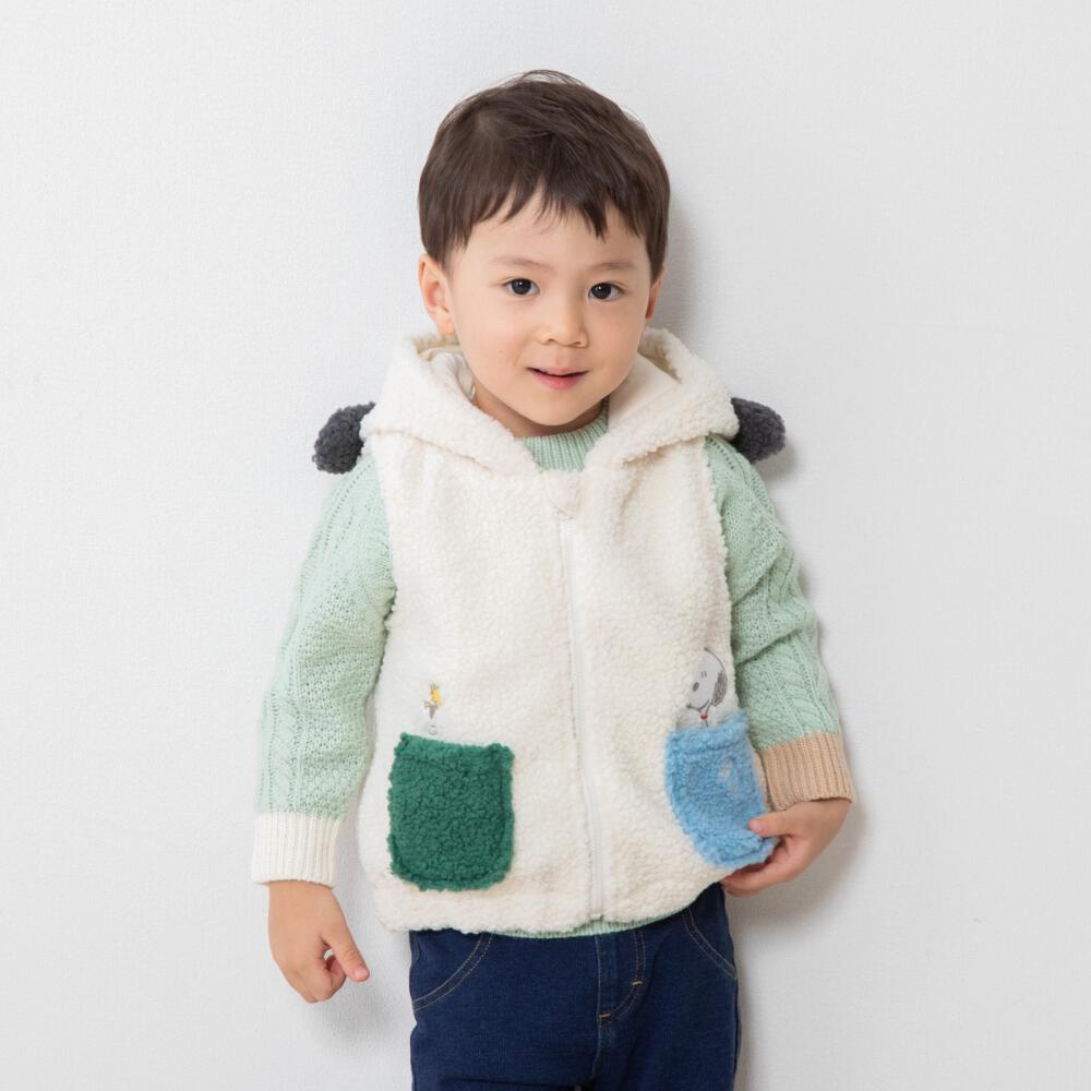 SNOOPY スヌーピー ベスト フード付き ナチュラル×90cm