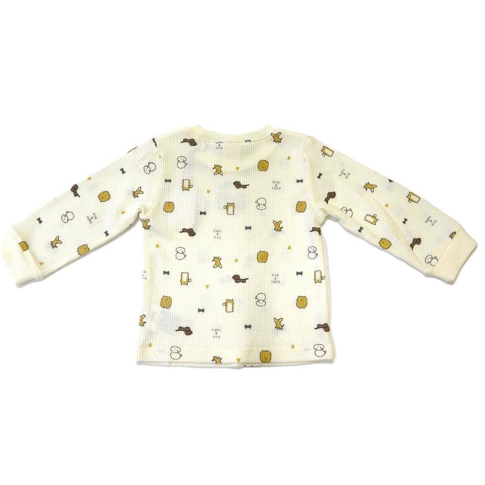 【ベビー×ペットコレクション】長袖Tシャツ ワッフル 犬総柄 ナチュラル×90cm