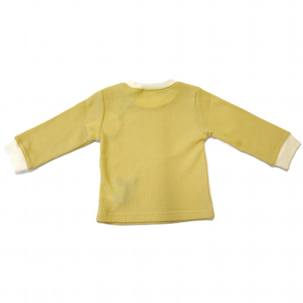 【ベビー×ペットコレクション】長袖Tシャツ ワッフル 犬ワンポイント イエロー×90cm