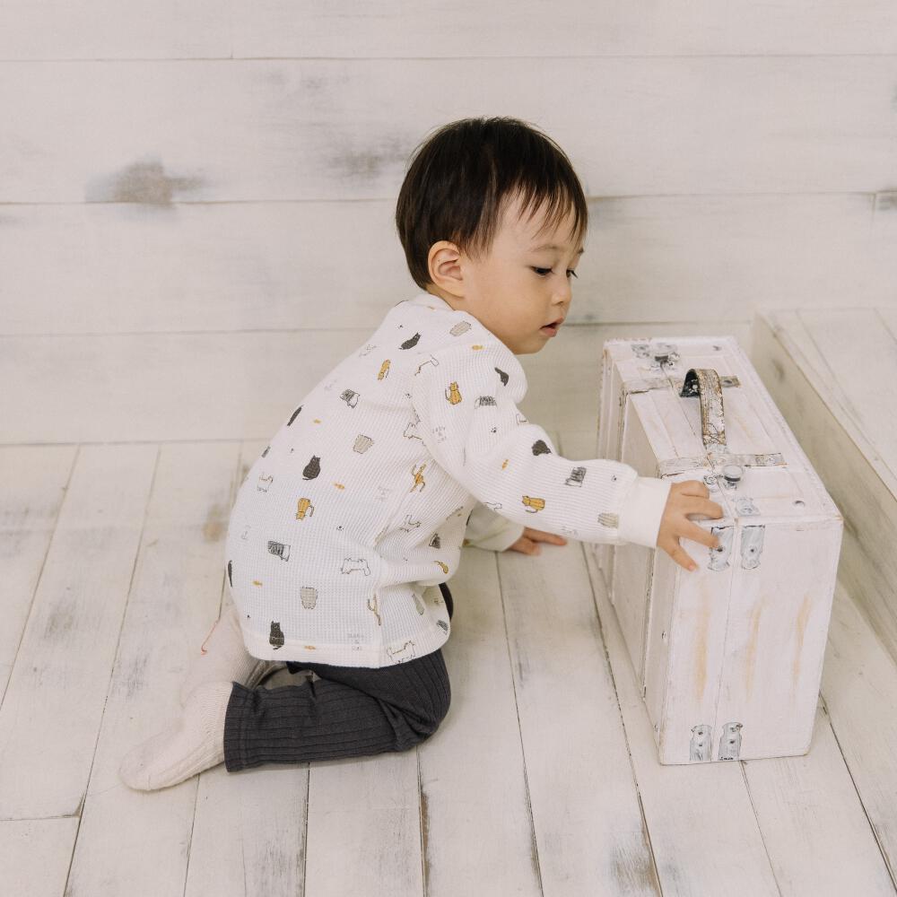 【ベビー×ペットコレクション】長袖Tシャツ ワッフル 猫総柄 ナチュラル×90cm