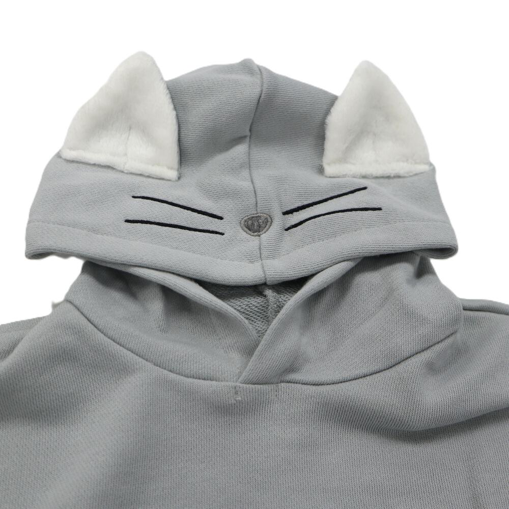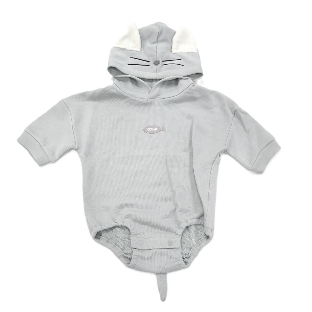 【ベビー×ペットコレクション】長袖フード付きボディスーツ ボア耳付き 裏毛 猫 70-80cm