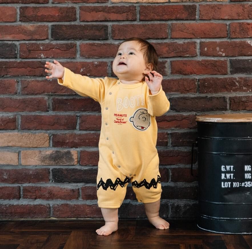 PEANUTSブランド 人気キャラクタースヌーピーの長袖カバーオールです。