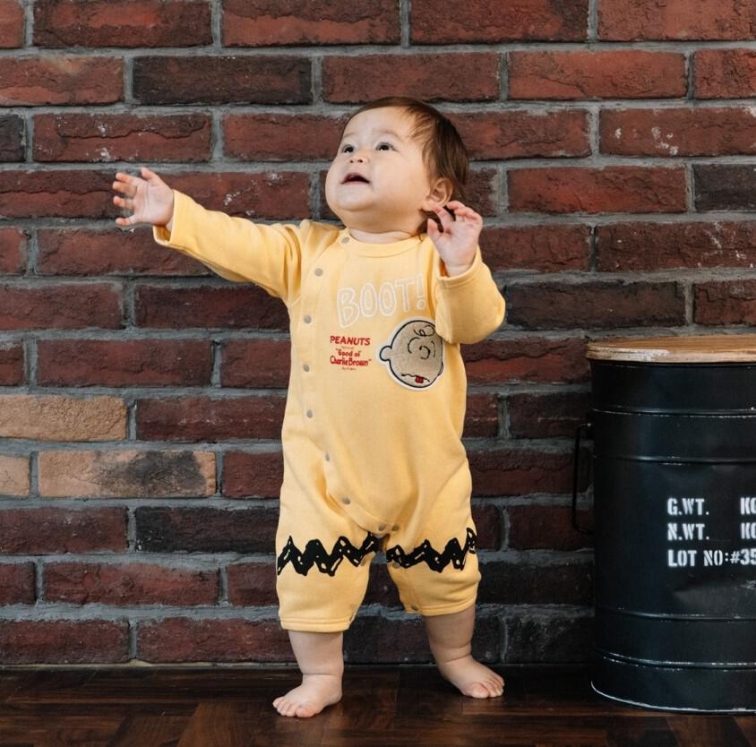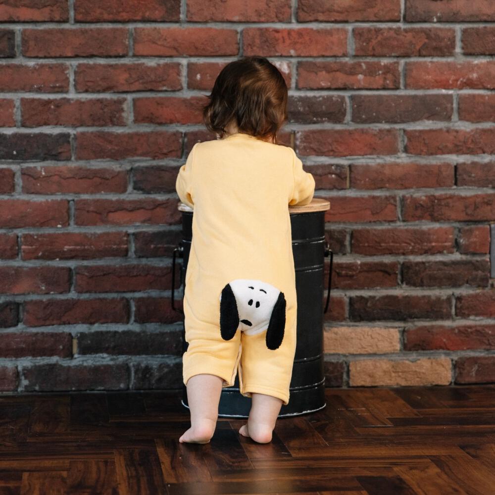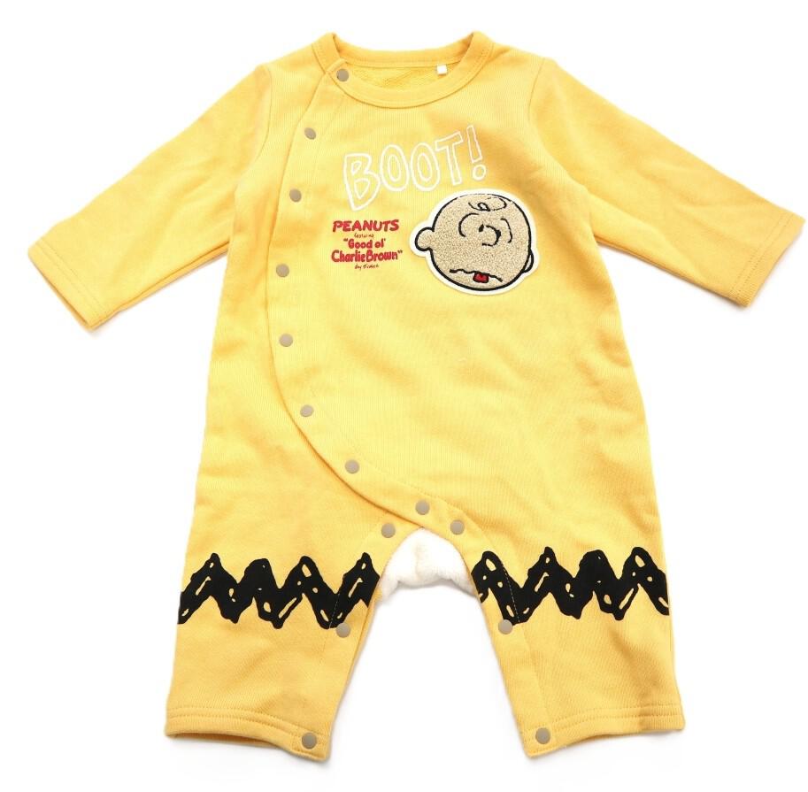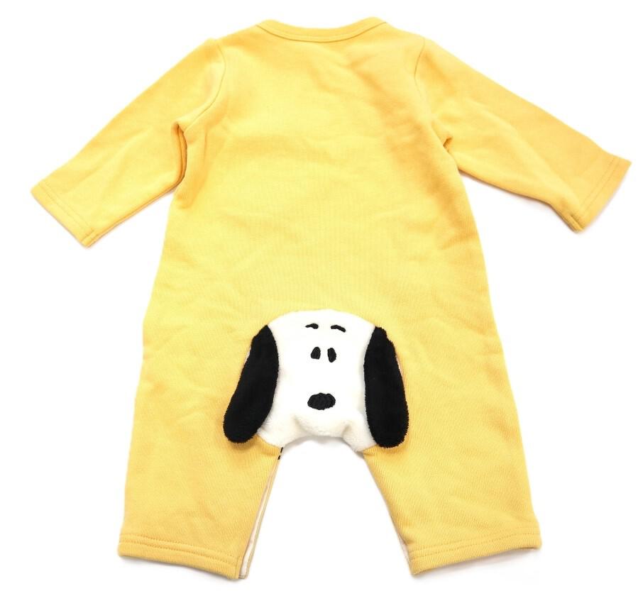 SNOOPY スヌーピー 長袖カバーオール おしり顔 イエロー×80cm ベビーザらス限定