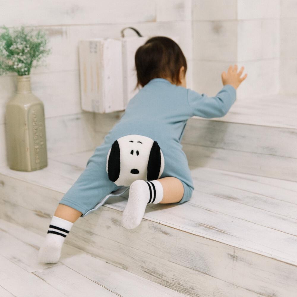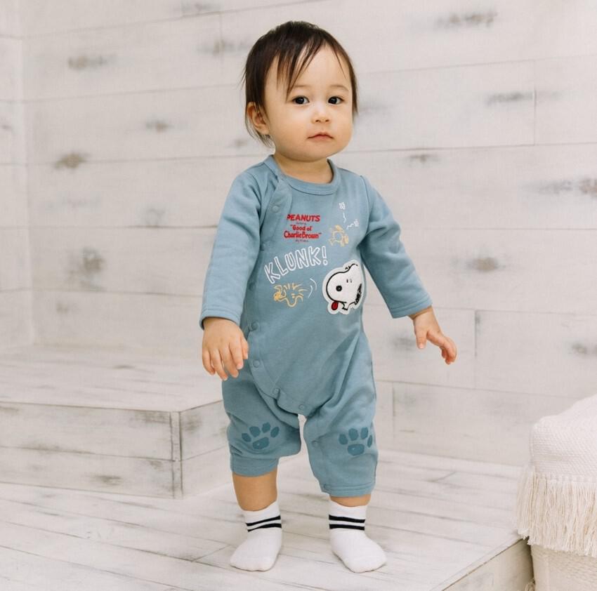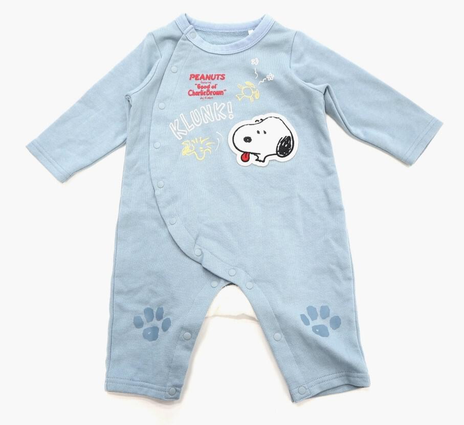 SNOOPY 長袖カバーオール おしり顔 スヌーピー ブルー×80cm ベビーザらス限定