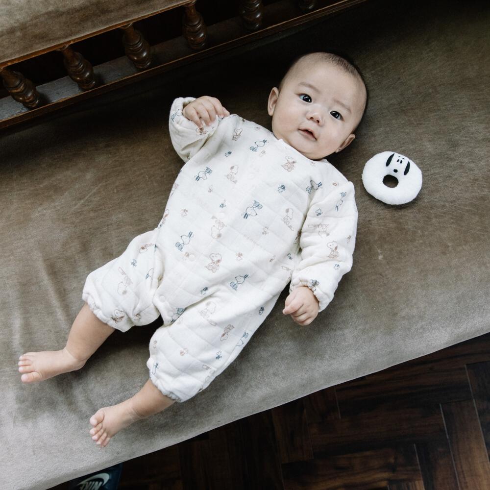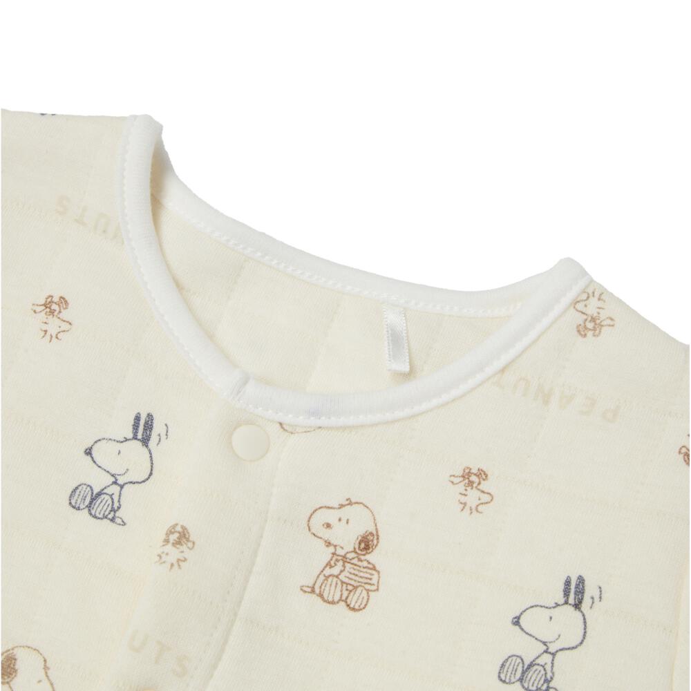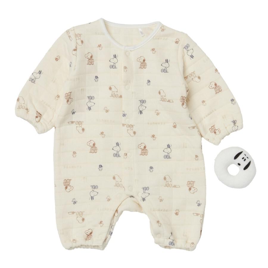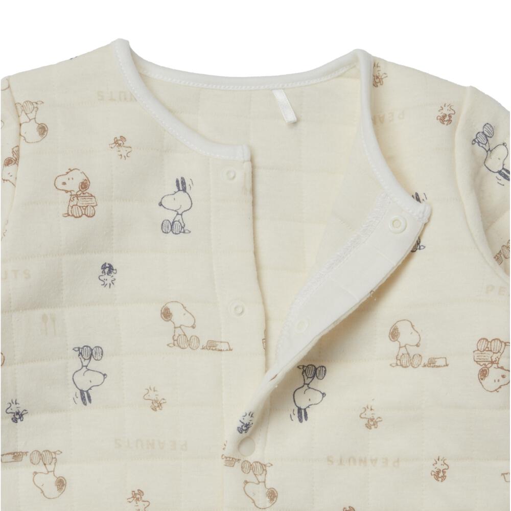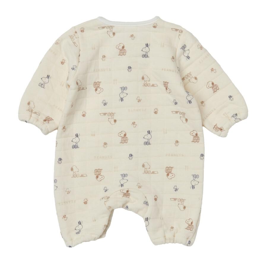 SNOOPY 長袖フィットオール マスコット付き 格子キルト 総柄 スヌーピー ナチュラル×50-60cm ベビーザらス限定