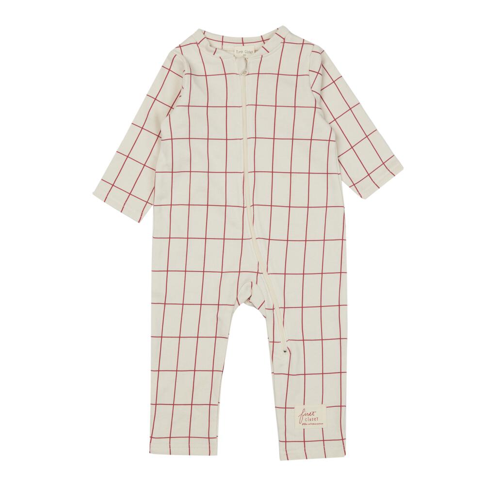【FirstCloset×mioさん】 長袖ファスナーオール 格子柄 裏毛 ナチュラル×80cm ベビーザらス限定