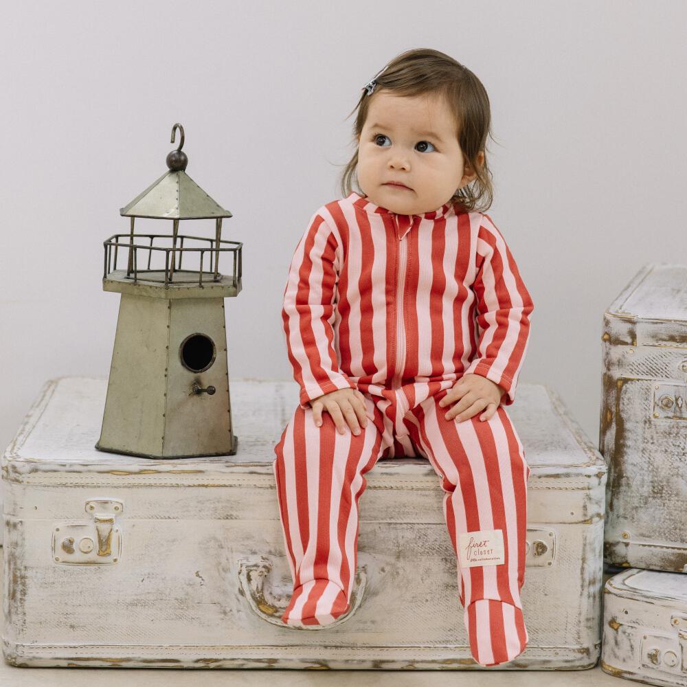 【FirstCloset×mioさん】 長袖ファスナーオール 足付き 裏毛 レッド×70cm ベビーザらス限定