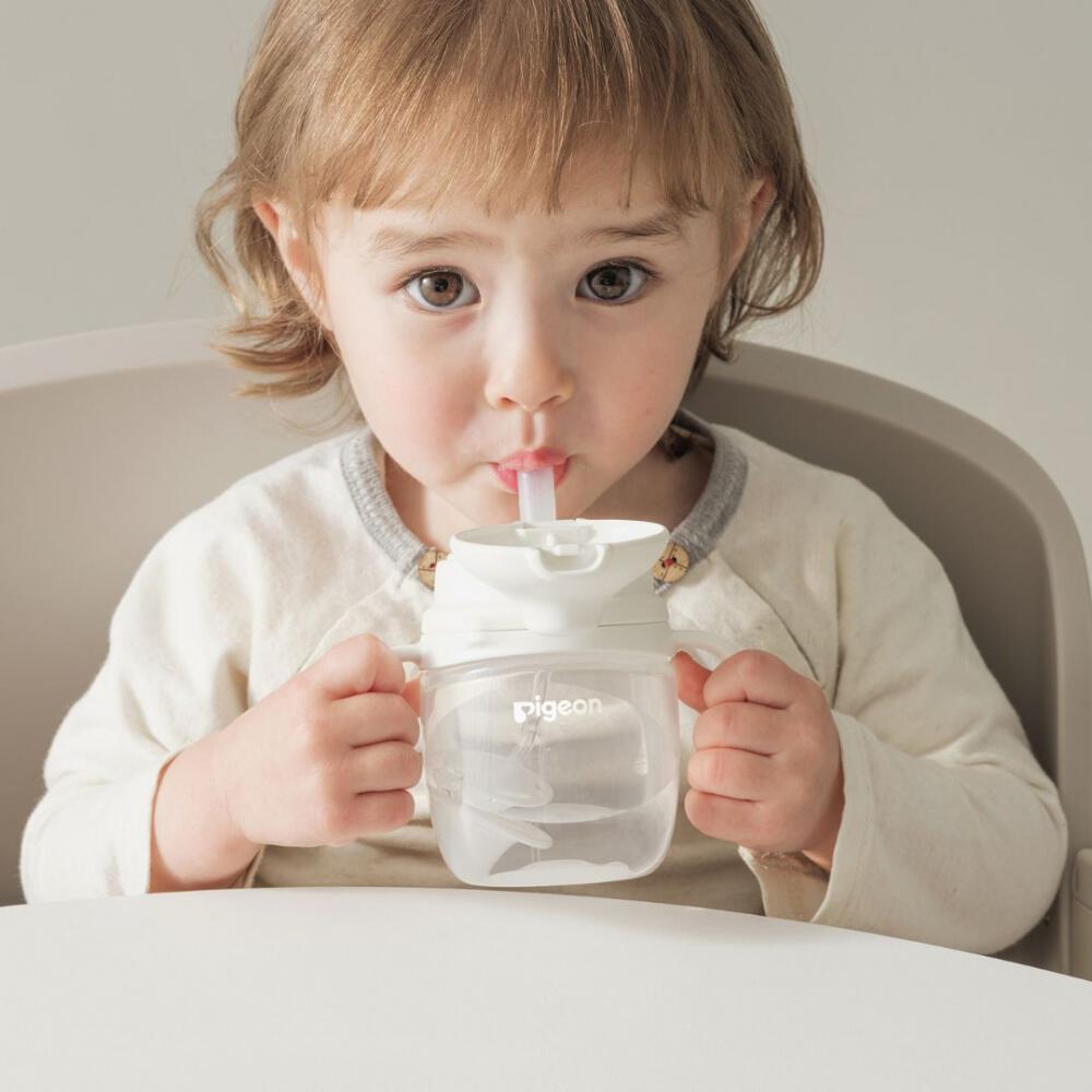 赤ちゃん一人ひとりの成長のペースに合わせて、使い慣れた母乳実感哺乳びんで、コップ飲み、ストロー飲みができます。
