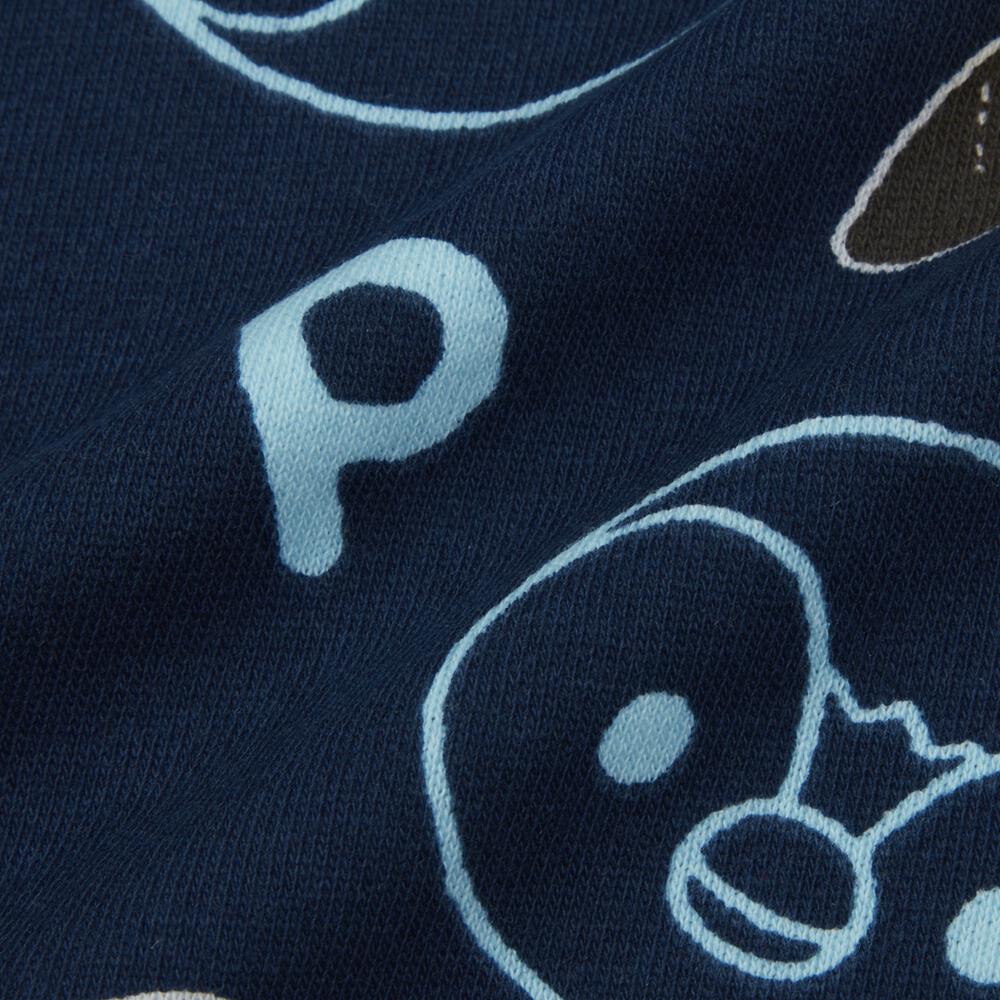 monpoke モンポケ トレーナー 裏毛 ポケット付き 総柄 ネイビー×80cm