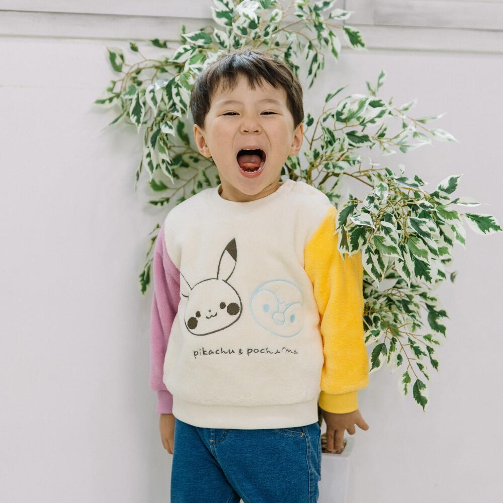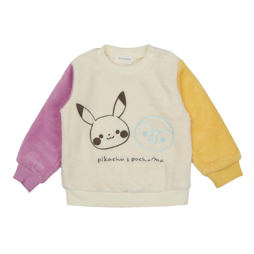 monpoke モンポケ トレーナー フリース 袖切替 ピカチュウ ナチュラル×100cm