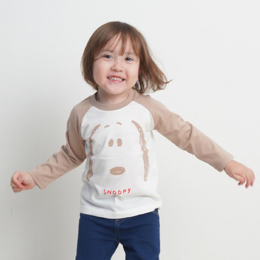 SNOOPY スヌーピー 長袖Tシャツ 天竺 ラグラン スヌーピーフェイス ブラウン×80cm ベビーザらス限定