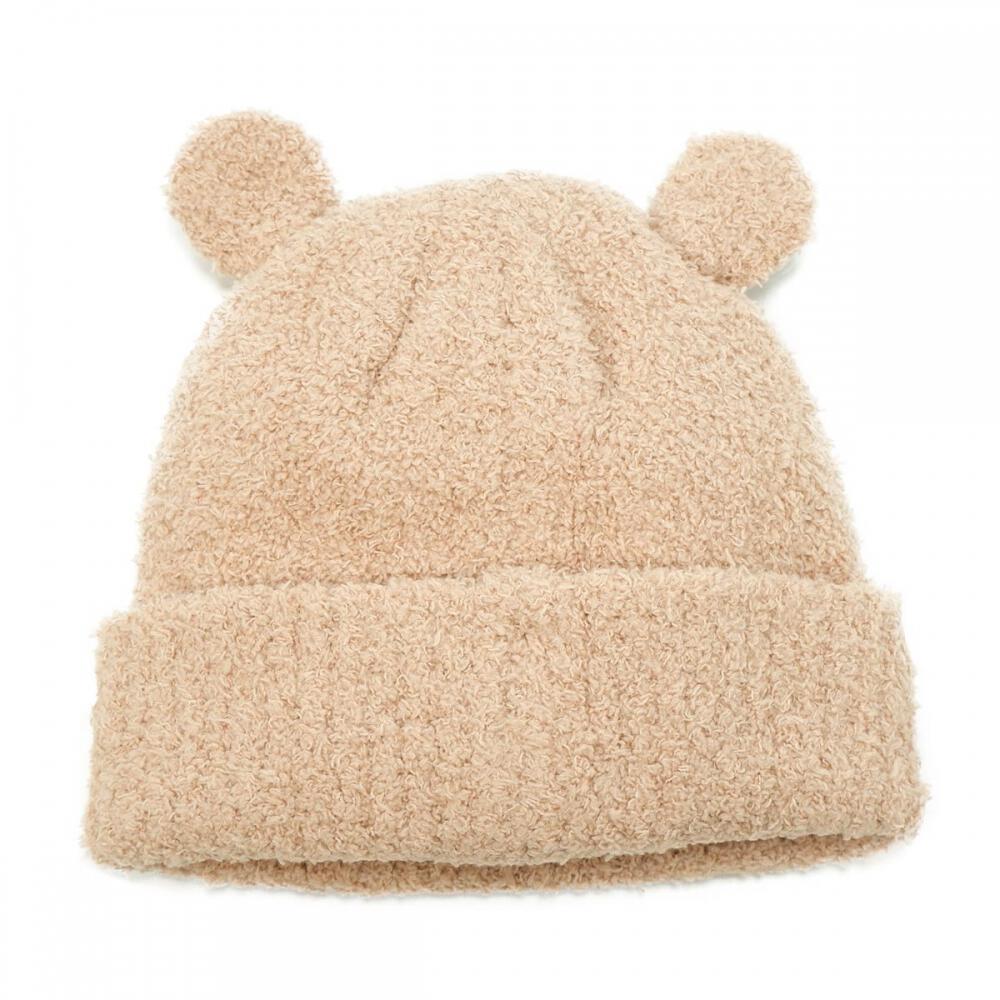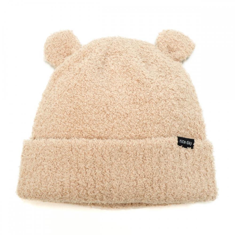 思わず抱きしめたくなる!モコモコのクマ耳付きニット帽。
