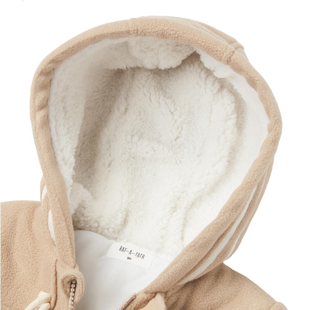 表地はフリース、中綿、裏地はモコモコせずお着替えできるタフタ素材を使用。