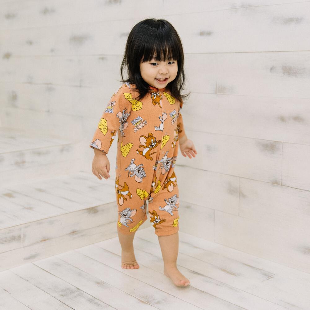 TOM and JERRY 長袖前開きプレオール スタイ付き トムとジェリー オレンジ×60-70cm