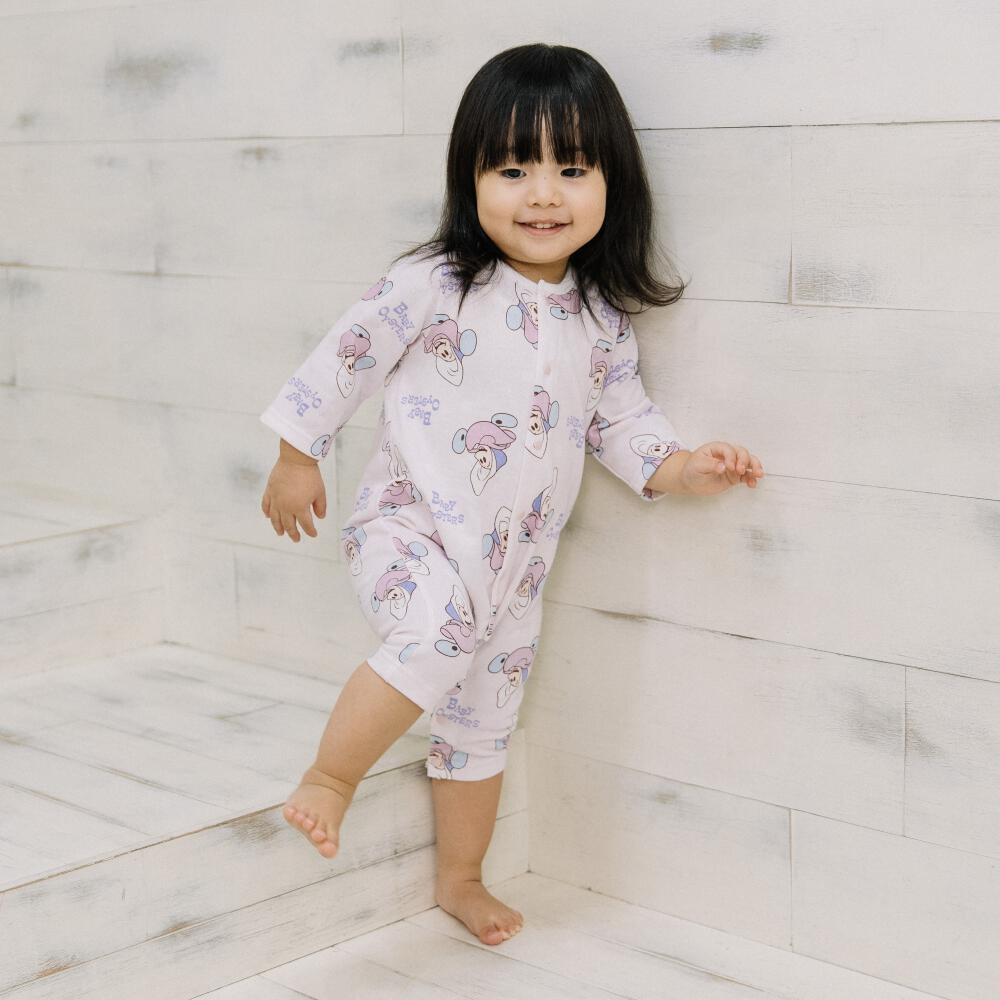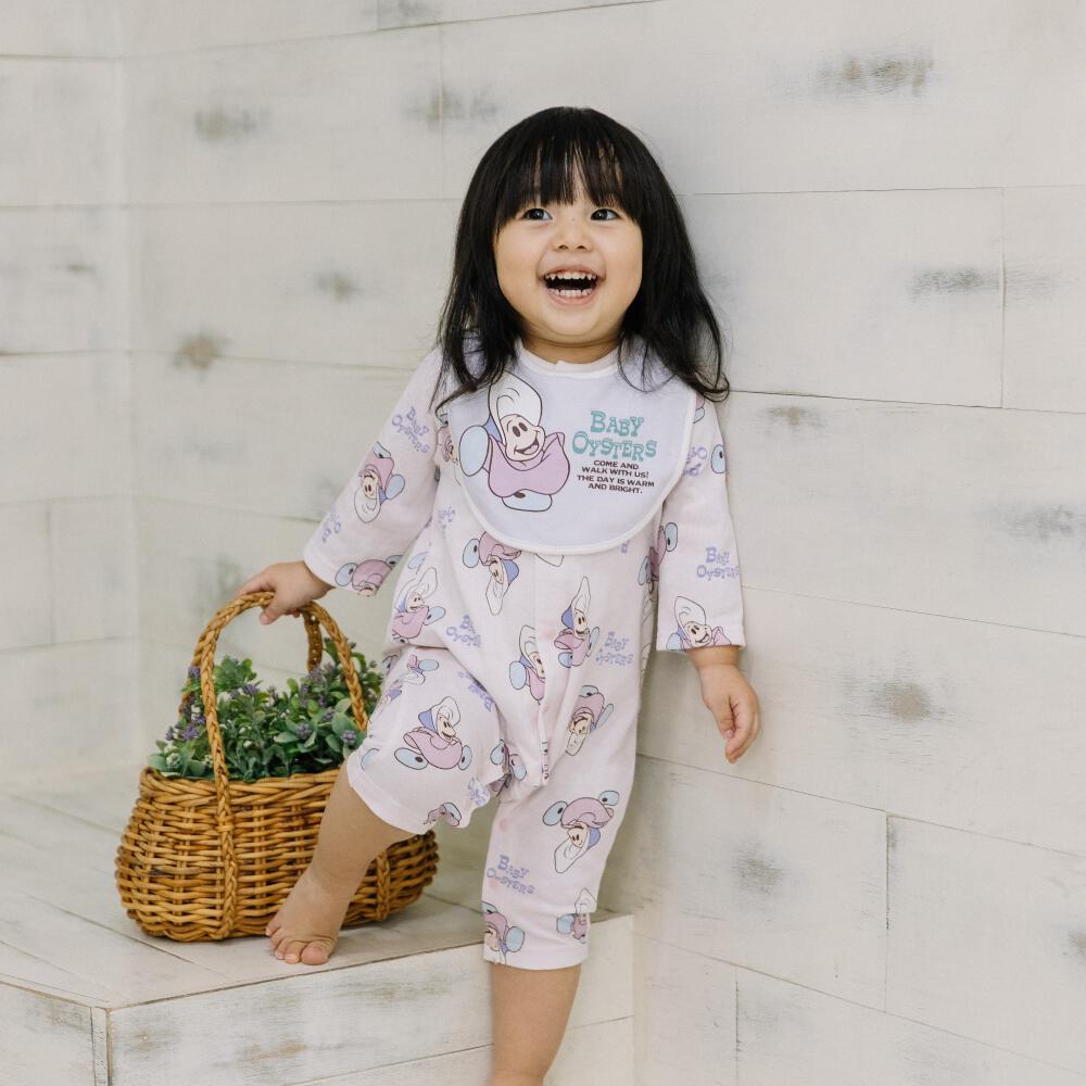 Disney ディズニー 長袖前開きプレオール スタイ付き ヤングオイスター ピンク×60-70cm
