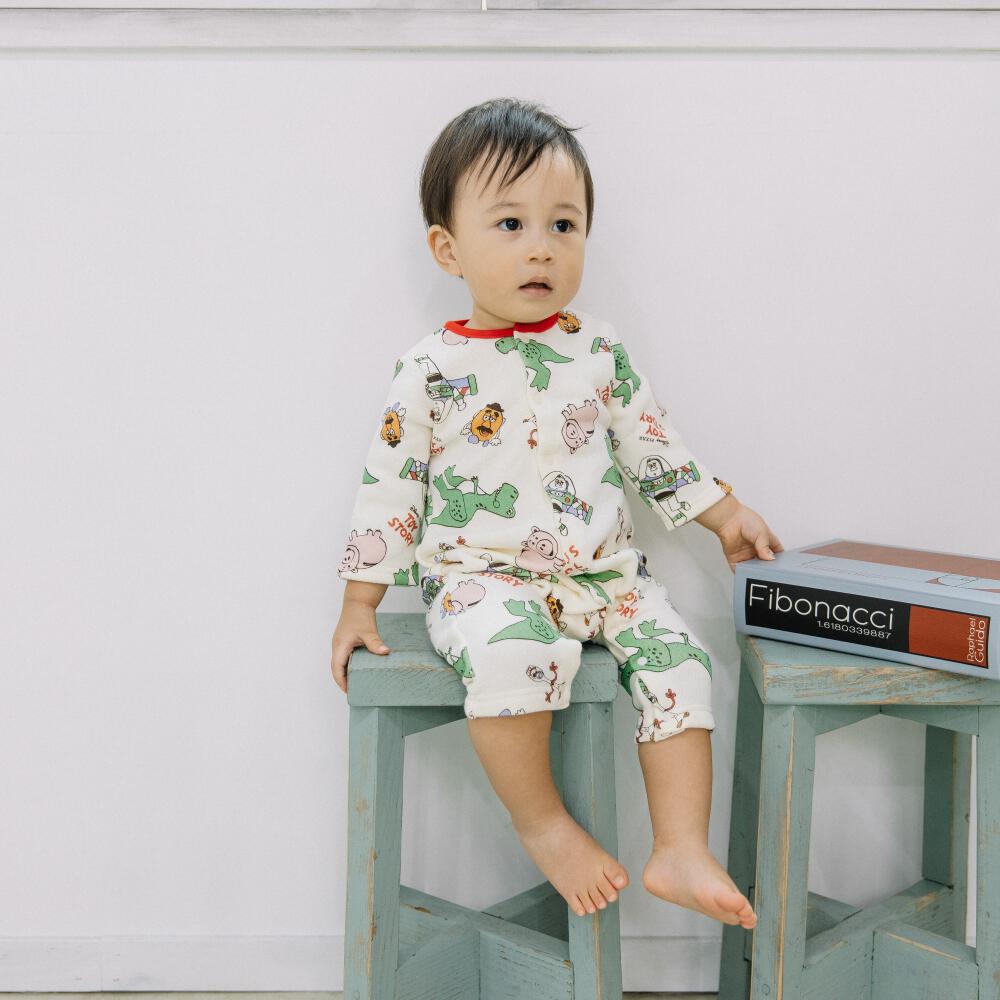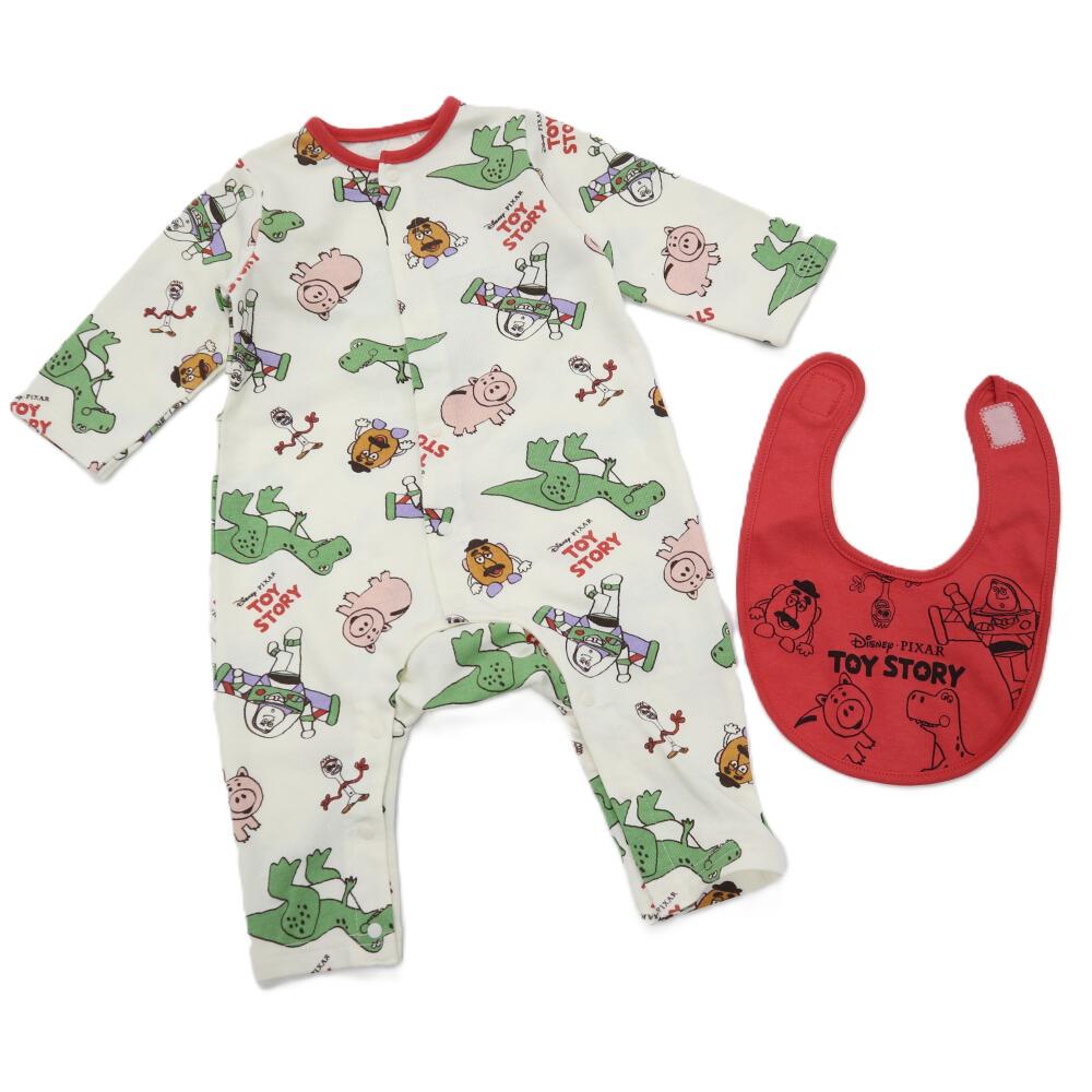 Disney ディズニー 長袖前開きプレオール スタイ付き トイストーリー ナチュラル×70-80cm