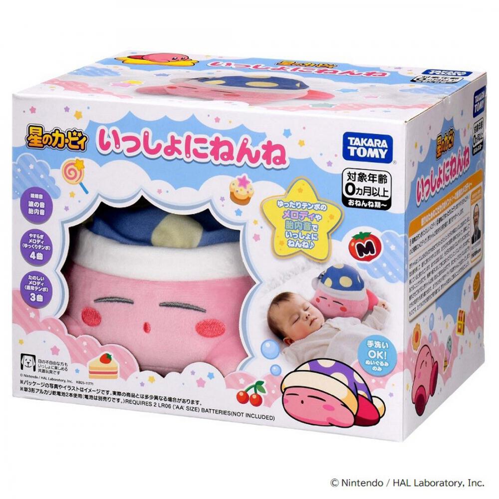 ゆったりテンポのメロディや胎内音で赤ちゃんの眠りをサポートする「星のカービィ」のぬいぐるみ。